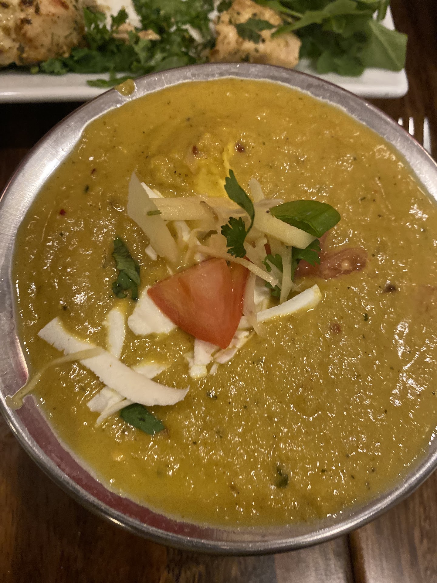My family ordered chicken madras, chicken saag, lamb tikka masala, an onion kulcha, and a nirvana bowl. The curries were flavorful and complex, the kulcha was a nice texture, and the nirvana bowl had a variety of ingredients (it felt healthy but wasn’t boring to eat). I thought the madras was the best out of everything we ordered. The floor felt strangely slippery, so be careful. There wasn’t any wait time for us since they’re a ‘new’ restaurant, so check them out before they get more popular!