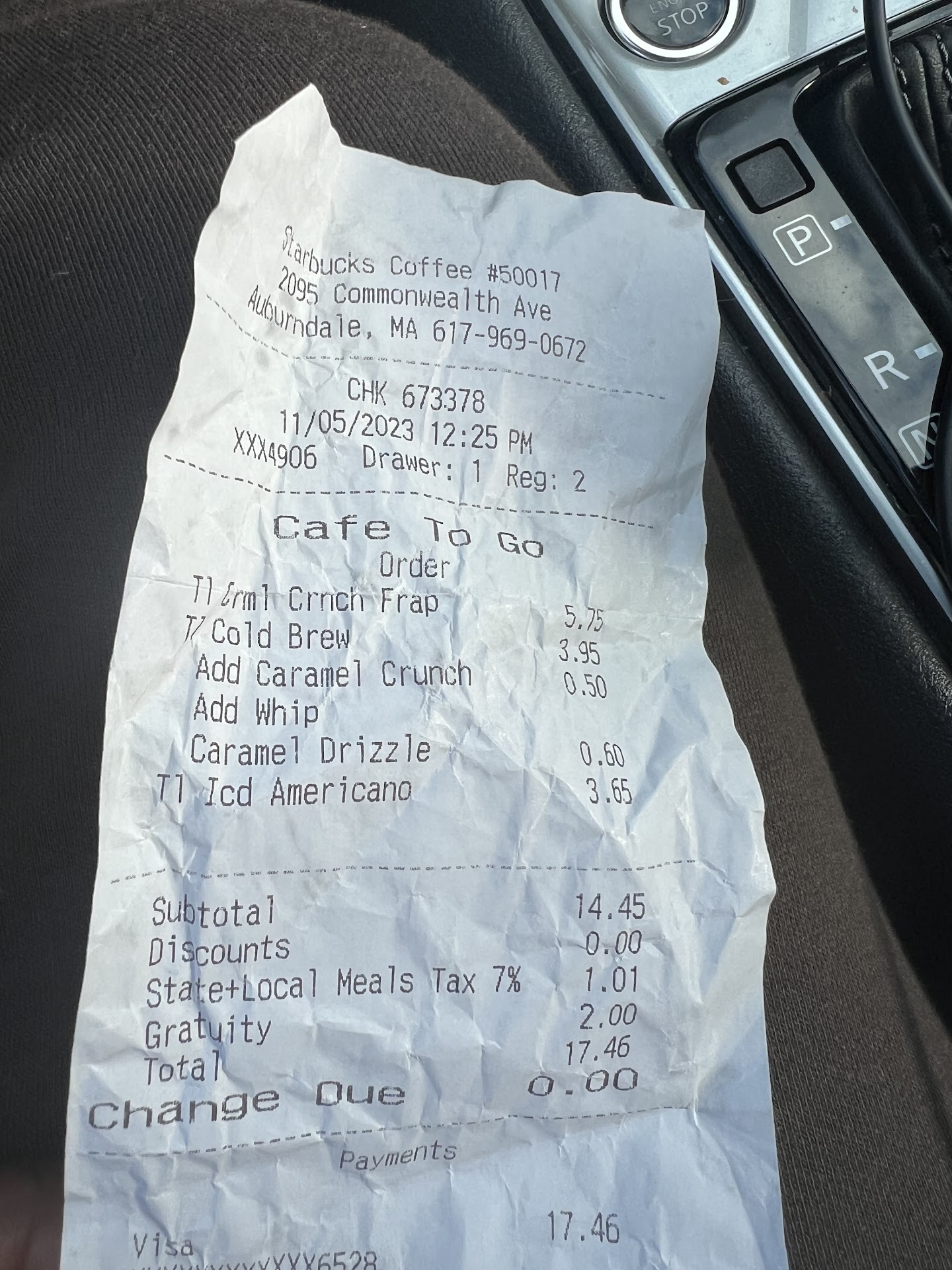 Starbucks has a very consistent product, so attempting to describe the coffee products may be a little repetitive, so I'll focus on the physical space and customer service.