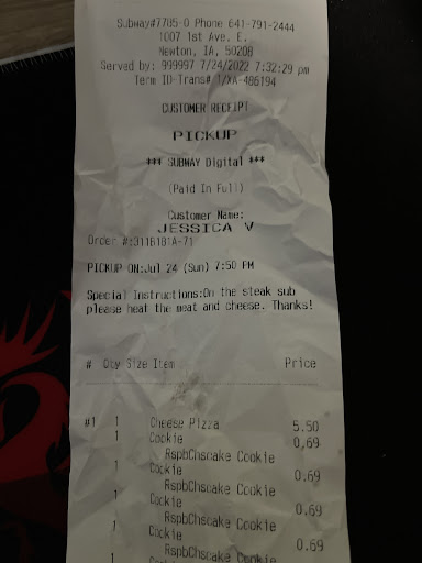 Read moreWe were in this town for a football game and stopped at the gas station next door to get something to drink went over to the subway, ordered a chicken salad wrap. To my surprise that was tasty considering its just chicken and the mayonnaise mixed in a paper bowl and put into the wrap. The main reason I went in there in order A sandwich was for my service dog so that she could have some CHICKEN. Upon checking out I asked if they had a paper bowl so that way I could put water in it for my dog. I was then told that I could have the bowl as long as I paid for it. The price of the paper bowl would be as if it was full of ingredients which is $7.98. FOR just A paper bowl.... I thought I was being punked. The girl told me "they take inventory" however the bowl used to mix my chicken with mayonnaise in just got thrown away and I didn't see her count it and I didn't get charged $7 for it either... so I'm confused maybe she just don't like...