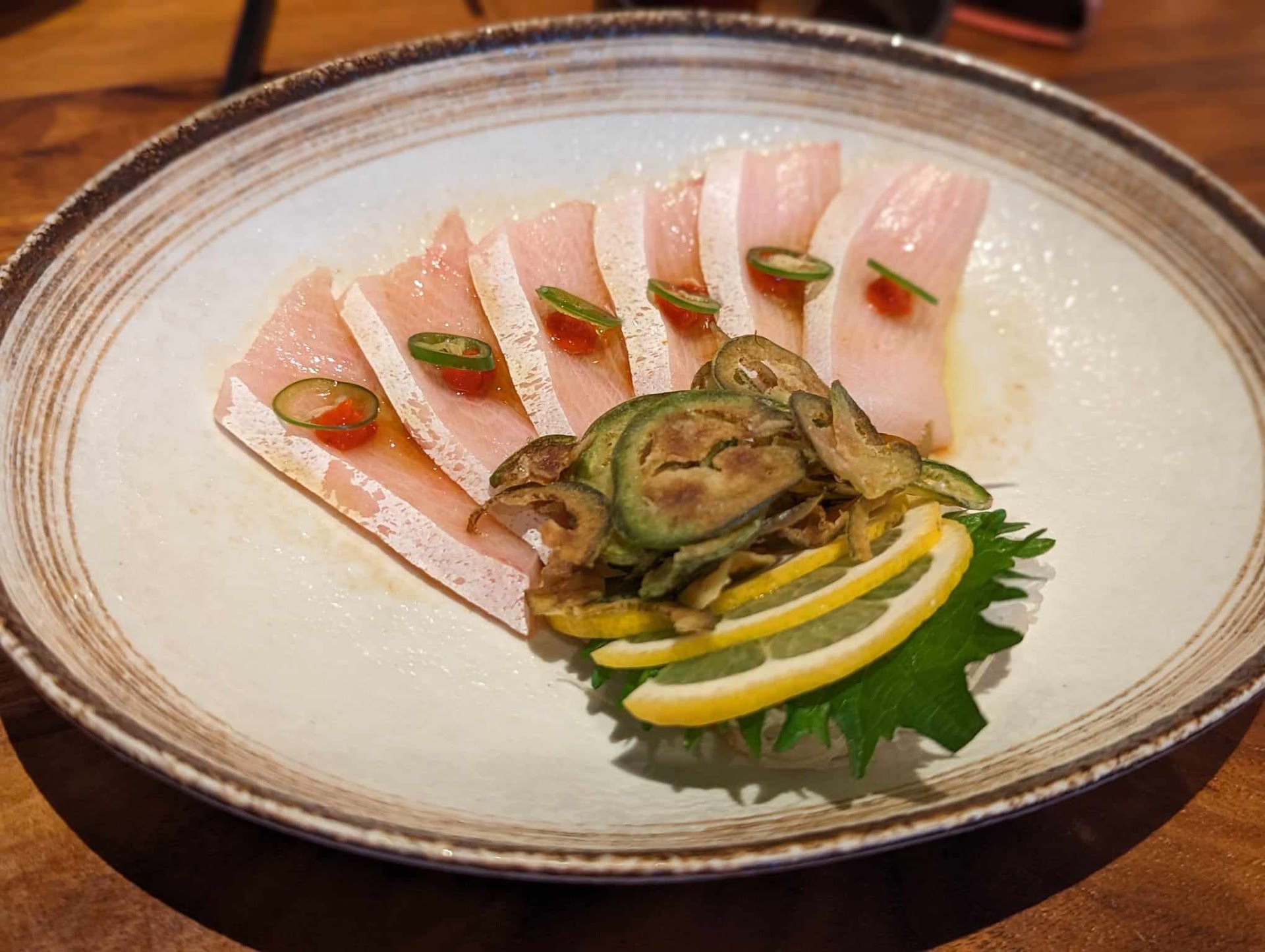 Must get Yellowtail jalapeno - super fresh and tender melt-in-your-mouth fish, crunchy jalapeno, tasty sauce. Definitely one of my favorite crudos I've had in the past year. Unnamed roll - I can't figure out what this roll was called (they might not sell it anymore), but it had tuna, chili crunch, and microgreens on top. It was my favorite roll that we tried! Flavors, textures, and fish were all on point.
