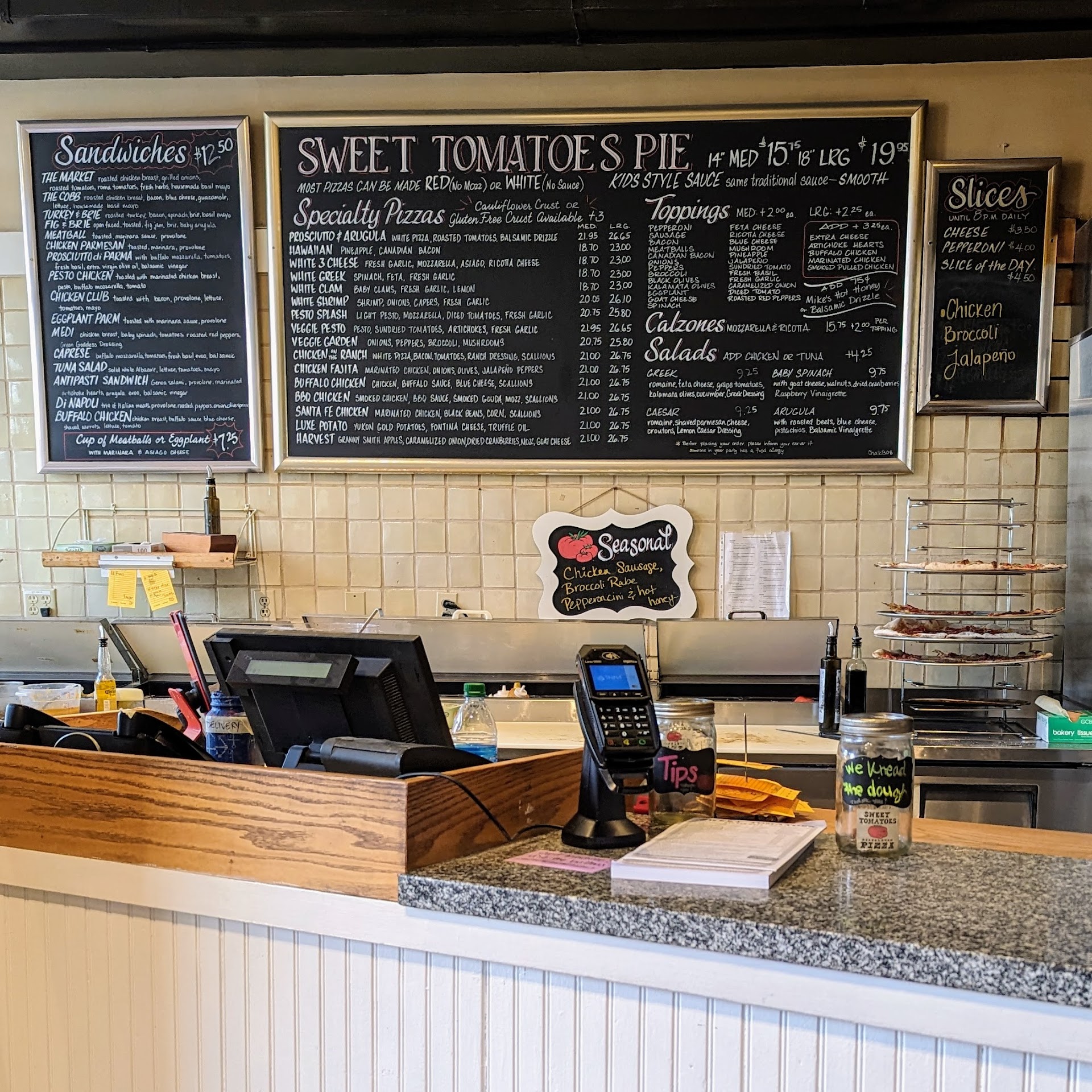 ย ย ย Read morePassed by here so many times, finally decided to give it a try. We ordered take out. The service was friendly and quick. Not huge inside but have few seatings. No regrets! Only regret was not taking a picture before devouring it in the car. We got a large sweet tomatoe pie and added pepperoni. They cut it into 10 slices and the pie was huge. I normally don't like thin crusts because they can be too thin and extra crunchy. But theirs is perfect. Nice light crunch and can still taste the dough part. Not overly saucy as they have fresh tomatoes that gives it the extra flavor and texture unlike others where the marinara sauce is dripping as you bite into it. Did not feel heavy or stuffed after eating 4 slices. Will be back to try their...