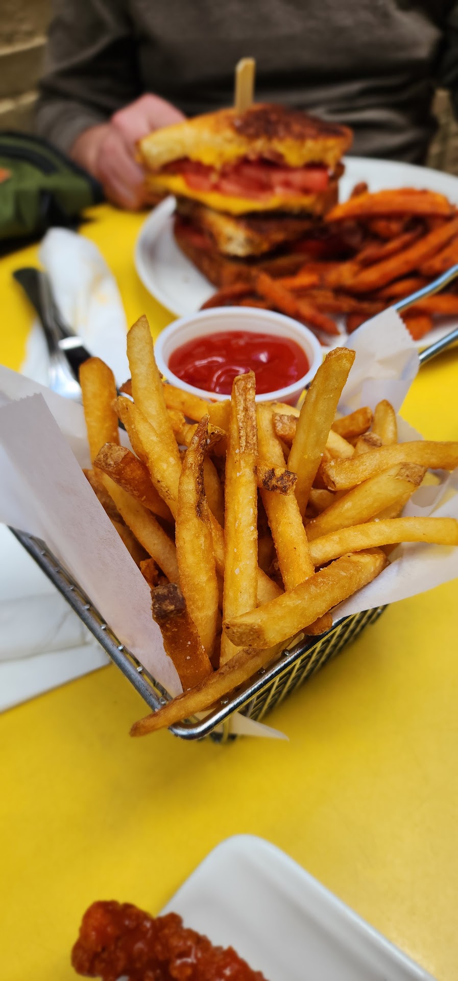 Read moreThe menu is rather limited, but the Sunday Brunch (11-3) is great. Adding the breakfast as a regular menu item would be a good idea, as there are no diner restaurants in the area. On other visits, I tried the Pastrami sandwich and the Friday Special steak. The sandwich was small and dry. It was not a deli sandwich. The steak was tough. Try the steak tips instead, as they are a much better cut of meat. The steak tips were great, cooked extra rare, just the way I like them. Park on the street or in the back. Some of the spaces are posted for other companies but are rarely used. Perhaps the signs could be removed. Complaints? My stomach cannot handle hot spices, and the cook put hot pepper powder (cayenne?) on the home fries. Get other potato options without the hot pepper. The sweet potato fries are great! Unfortunately, they only have barbecue sauce, no steak sauce or Worcestershire sauce. Also, for some reason, there is no butter or jelly available for your English muffin. (Bring your own steak sauce, butter, and jelly?) Service is great, artsy ambiance is great, with many muted...