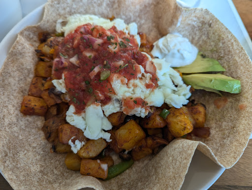 Ā Ā Ā Read moreI have debating whether or not to review this restaurant because I really can't complain about the staff or management. They were very nice and accommodating. To be honest the food was OK. I came towards the end of the shift..I got the breakfast bowl. Half the potatoes were good, half were hard dry and overcooked. I asked for scrambled eggs with Cheddar cheese and they put a layer of cheese on top of the potatoes and placed the eggs on top. If the potatoes were fresh, the meal would be decent though. My pancake came out on the cooler side so it make it a little dry but I can tell that if it were hot and fresh, it would be good. My waiter who was great, noticed I didn't eat it and offered to take it off. Again, the service was great. My BIGGEST complaint was that there was a dog in the booth in front of me. Sitting in the booth. Owner was feeding the dog off her plate, engaging hugging and so forth. I'm a healthcare professional and I am completely against this. I understand laws but make the pet stay on the floor and provide them water. Cross contamination is real, the staff is servicing her not knowing the dog has just been all over the plates sniffing and waiting to be fed. It is known that dogs mouths are not clean and they carry bacteria and parasites regardless of how cute they are. The staff was fully aware the dog was there. I didn't mention this to management as I had another issues that needed to be handled and didn't want to bother. Again, I would like to know, so I wrote the review. Everyone doesn't like pets around while they are eating and I feel like there should be some policies in place so that everyone can be comfortable, hygiene is maintained, and "service dogs"...