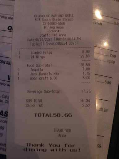 Clubhouse knowingly charged me almost twice as much for 12 wings compared to the price on the menu. My son, who is a disabled vet, called the order in and wanted to put it on a credit card and was told that they didnāt have time to take that. Pay when you come in.. I am his mother and decided to go in and pay for it, I was shocked when I was quoted $36 for 24 wings and a small soda. I paid, but when I got home, I told my son he took advantage of me. Che showed show me the price on the menu online and it was almost half the price. I am immediately called up, And identified myself as the person that just picked up wings. I was told that the price I paid was significantly higher than the menu they just havenāt gotten around to changing it. I said you need to do that and he said, ā yeah,we doāand he hung up. I told my son I was going to speak to the manager on Monday because theyāre so busy tonight and he said donāt bother because this has been going on for over a year and if I looked under wings reviews, Iād see terrible reviews of them taking advantage as well in fact there was almost the same exact review, of them charging almost double for their wings from a year ago. They never changed their menu in a year, so I wonāt hold my breath. My son is very upset and I am very aggravated. Look for me on TripAdvisor and yelp and any place else I can think of to post this. My son and his friend frequent of this place. No longer. Clubhouse is knowingly stealing. from their patrons. I checked the online Clubhouse menu and it has been...