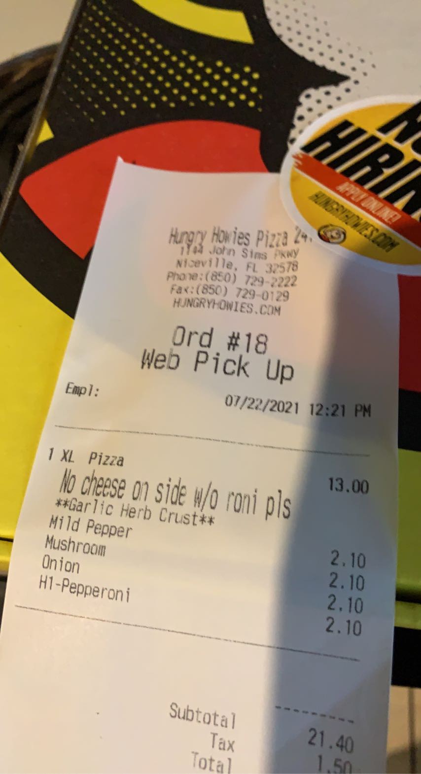 3 delivery drivers and 2 hrs is all it took to get a Hungry Howie's pizza. After they FINALLY made the delivery, the manager called to tell us how none of it was their fault. They had no idea where Ernie's Dockside cafe is located - one of the big restaurants along the bayou.