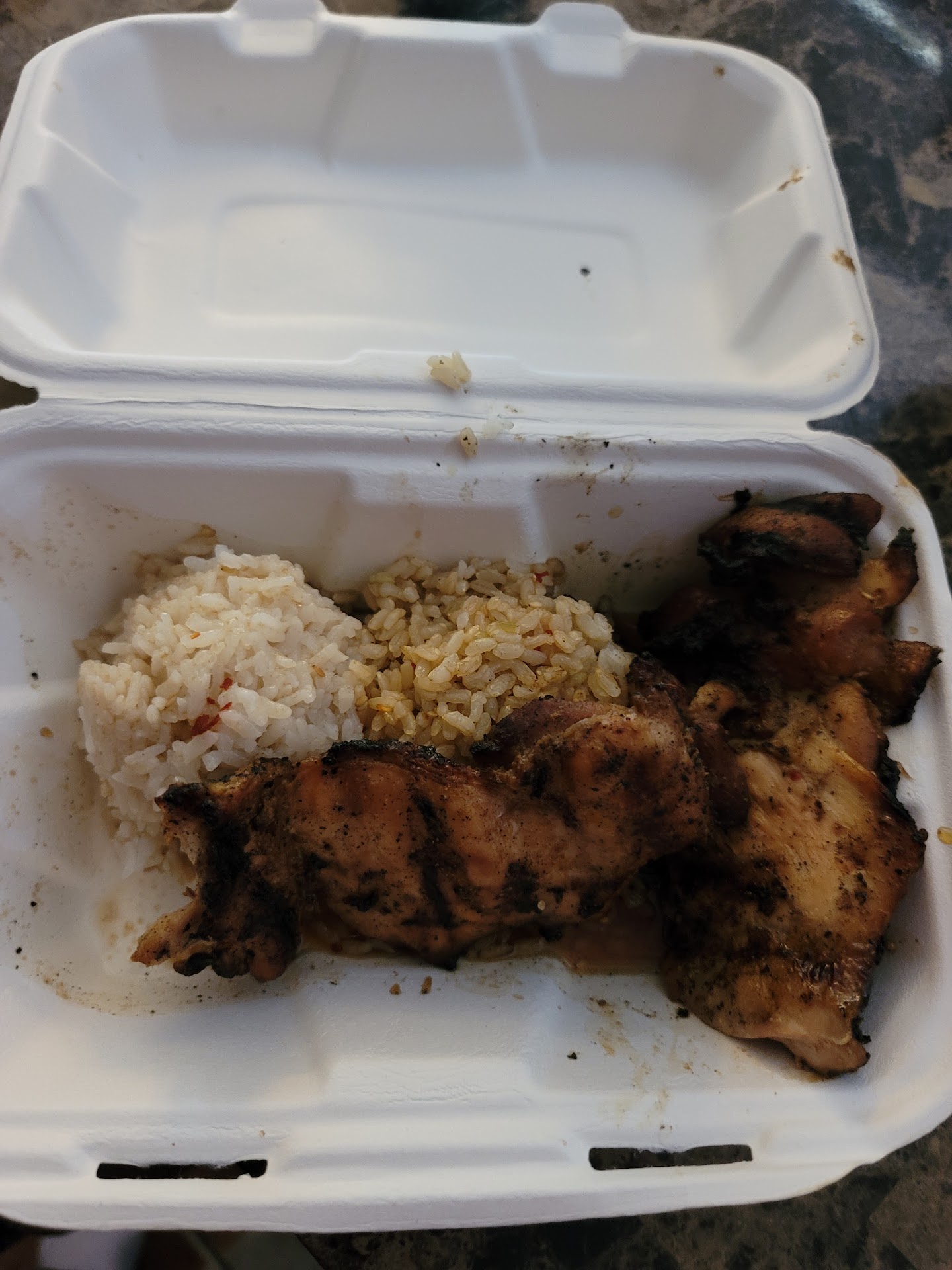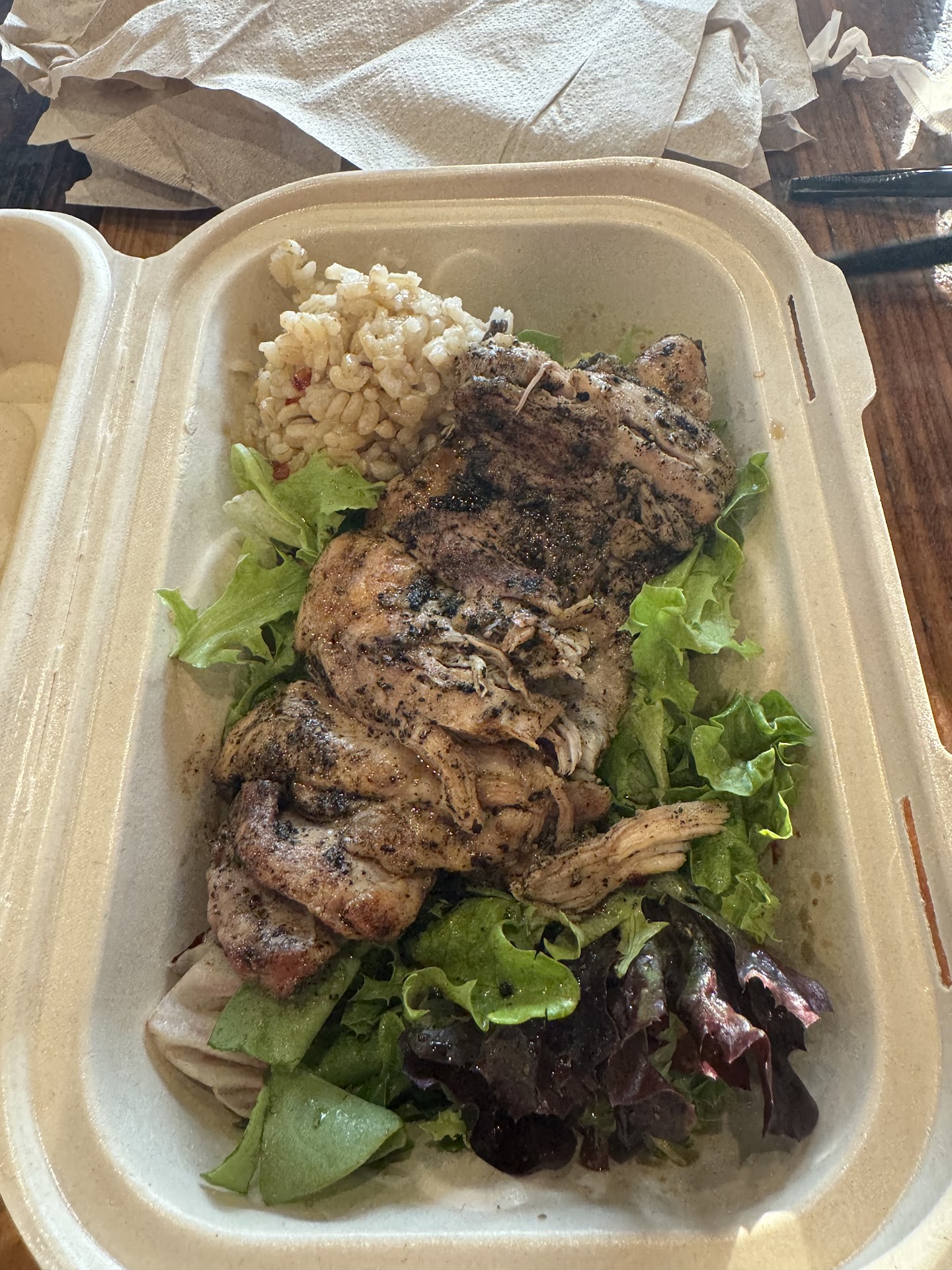 They have an online ordering system which is nice if you don't feel like going inside you can order online and they bring it out to you. Prices are not too bad for the amount of food you can get. Was only 6.15 for teriyaki chicken with white rice and brown rice. The waitress seems friendly which is better than some places with cranky staff. The food was ready 4 minutes after the online order estimate. They were busy when I ordered so thats a good time frame. There was an issue I seen through the window of the order pick up though, one of the cooks was drinking from their personal water bottle and didn't wash hands afterwards, instead they wiped their hands off on their pants and continued working. A bit of a shame cause the food smells good when being brought out and seeing stuff like a cook not washing hands after eating and drinking and only wiping them off on pants is a bit of a concern for me. I was happy when I seen chicken thighs cause my husband whos a native pacific islanders BBQ chicken thighs are a favorite of our family and friends. As far as taste goes its good but not my favorite. The chicken was more sweet than I'd like and I don't think the Marinade was able to sit as long as it should. The flavor was more on the outside and didn't set in as much as it should have for being marinated. The chicken was fully cooked and so was the rice without being overdone or underdone. My husband is a guam native so i know a good bit about pacific Island food and what it tastes like. Its got some things going for it like the marinating and the char from being grilled and the rice as a side. But was a bit sweeter than I'd expect from a pacific inspired restaurant. With taste, cost, quality, quantity, and professionalism all included...