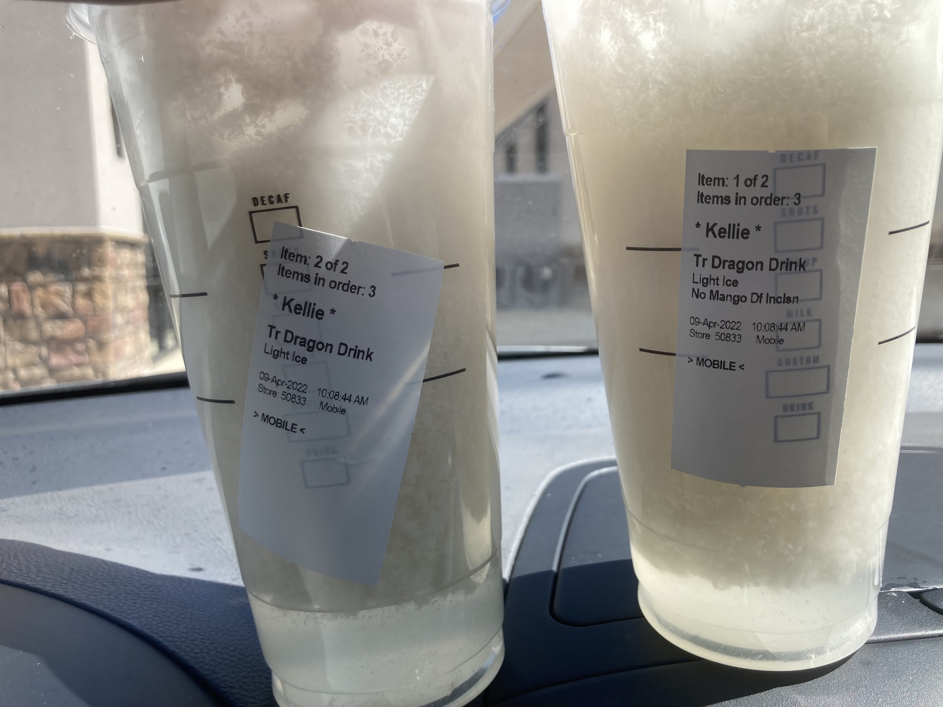 Today someone I ordered for got a mysterious concoction of decaf espresso (somehow) in a half-filled venti cup of ice, the wrong type of milk entirely. They originally ordered a Chestnut Praline Latte with three shots of espresso. Sizes were wrong, receiving much smaller than ordered. I received two small frappes instead of a venti hot latte.