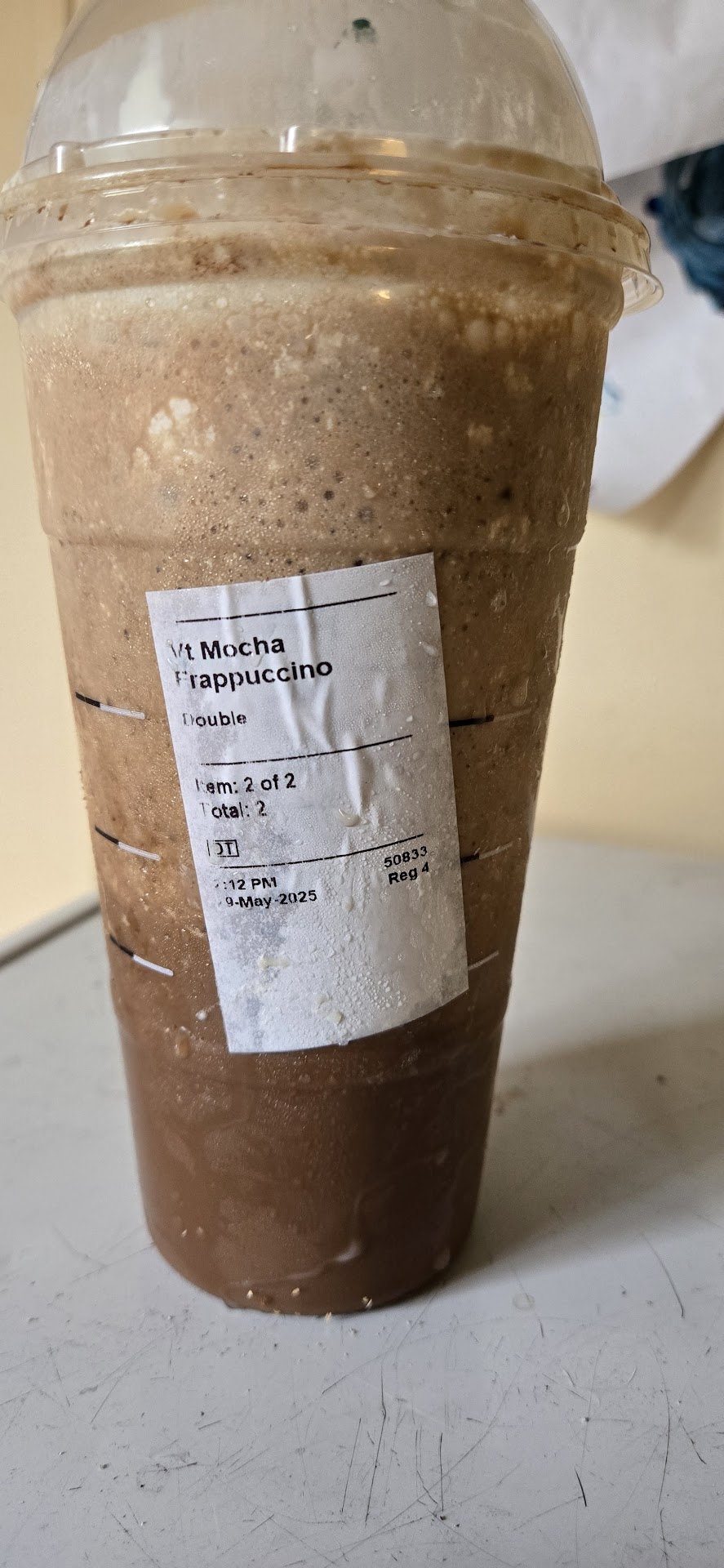 Today someone I ordered for got a mysterious concoction of decaf espresso (somehow) in a half-filled venti cup of ice, the wrong type of milk entirely. They originally ordered a Chestnut Praline Latte with three shots of espresso. Sizes were wrong, receiving much smaller than ordered. I received two small frappes instead of a venti hot latte.