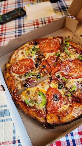 Read moreWood fired pizza (you can see the logs burning in there). It is pricey but the meat pizza was very very good. Nice and friendly people working there. Stopped on a whim but had called before and was told "they weren't making pizza that night" so maybe call beforehand. Also have a nice selection of produce. Bought some coffee that smells like Buffalo Trace bourbon. Hope it tastes as good as it smells....