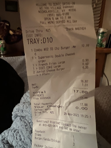 Read moreSo the lady taking our order seem like she had somewhere else to be while running around filling up everything instead of taking our order The little girl in the drive-thru was very helpful and grabbing everything and delivering our food she did everything but take the order which she seemed like she was running most of the front line and the drive-thru just by herself you needed a raise. To get to the food order to double hamburger one patty was burnt and the other patty seem to be half raw The lettuce that was on it seemed old and wilted and whoever was making the burger must have light onions because there was half of a diced onion if not more shoved on that burger. My niece that was with me ordered a corn dog which the tip was burnt which is still kind of mind-boggling and my girls hot dogs seem to be the best and only thing that was completely consumable that we've ordered. The inside of the Sonic look amazing with spotless clean The lady taking my order also told me that the soda machine was down simply because she had just got done cleaning it 3 hours prior to them closing and didn't want to use it so again the girl running the drive through was very prompt to help us and get us new drinks and condiments as we needed them service from her was outstanding food...