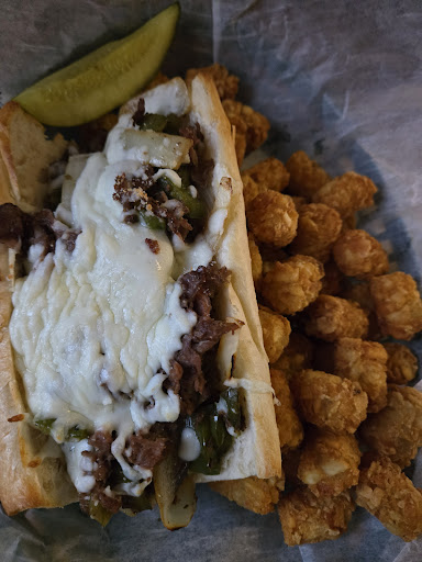 Read moreWhoever recommends this place...need to check their flavor profile. It's very local, dive bar that probably has people whos been coming here for years only. Like have these people tried other places?? Lets start with phily cheese steak. Meat was tough and flavorless. Like no seasoning. I dont think they put salt on grill onions and peppers either. Potato tots was over fried, very hard and had old oil smell. Pizza - this is what I came for, 50% off on thursdays. Possibly one of the worst thin crust pizza I had. Could not finish both pizza and sandwich. Maybe you are a local whos been eating here for long time, so maybe you are used to this taste but this is not...