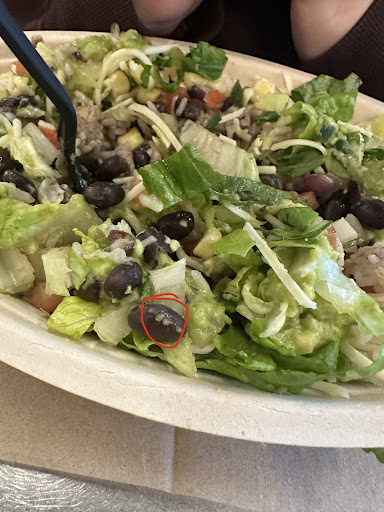 I have had numerous bad experiences with the staff, the management, the dirty counter tops, and the poor quality of food at this specific Chipotle location. Yet I still visit this location once in a while because it is very close to where I work and I genuinely like Chipotle’s food. Today my fiancé and I stopped in for a late lunch and not only was the staff rude and ignorant and understaffed as usual, but this time we were both served FOOD WITH BUGS in it. We sat down in the restaurant to eat after waiting a while to be served, even though we were the only ones in there, and all of a sudden I see small green bugs crawling on my beans and all over the lettuce in my veggie bowl. I immediately freaked out and we were concerned for our health in case we ate some of the bugs in our first bites of the food. We kindly and calmly informed the staff and manager and they did not seem to care, they just starred at us. We asked for a refund and threw the food away and we left. But that was all. They did not really care about the situation. They clearly did not wash the lettuce properly and it was contaminating all the other food. There were hundreds of small green bugs crawling out of the lettuce into the other food where they serve the lettuce/ toppings. They were most likely serving this lettuce all day long to customers. This is extremely unacceptable and inhumane to treat customers this way and feed them bugs. This Chipotle location, management, food, and the owners are a disgrace to the...