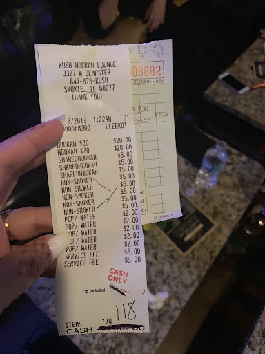 Tim is an incredible soul who runs his business with integrity rather than just for money. Everyone is treated like FAMILY (customers & employee's). I'd rather put my $ $$ into an establishment that prioritizes integrity, cleanliness, & hospitality. Kush Hookah Lounges Hookahs are disinfected between customers, the establishment is spotlessly cleaned every night. The establishment gets deep cleaned every few months depending on the cleanliness of the establishment. Let's not forget the bathroom, disinfected EVERY night and THROUGHOUT the night!!! Oh & the ventilation? Tim has the top of the line ventilator in his establishment. I've been to a few Hookah Lounges & couldn't even breathe!! Ventilation is extremely important!!! The establishment is ran smooth with hospitality serving the best hookahs w/ an enormous list of shisha brands & shisha. You can smoke the traditional style or the evolution of Hookah. Respectfully, Let's all enjoy our time in a safe environment servicing phenomenal hookahs & service. All the violence going on come to Kush Hookah Lounge & enjoy your time stress free!! CASH ONLY |...