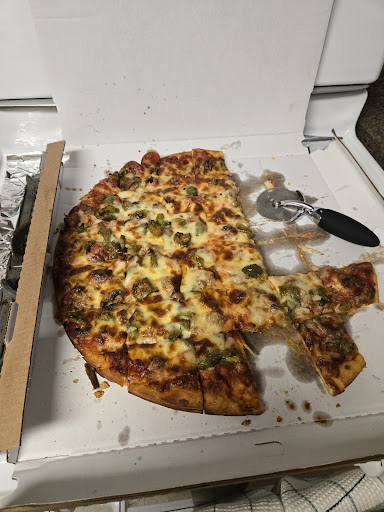 My wife and I walk in at 8:12, all the chairs are up on the desks. They close at 9... I ordered my pizza to go, and an order of fries. I get the fries quick, and am forced to eat them on the garbage can since there's absolutely nowhere to sit, 45 minutes before they close. A middle-aged white man walks in and says "folks you don't have to eat there. Please, have a seat." He takes down two chairs at a table, very cool of him. Turns out he is the owner and about the only decent human being working there.
