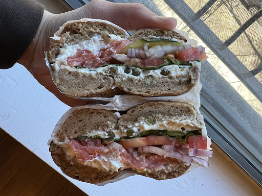 Read moreWhat a great find! Everyday I drive past this place and it is always packed. I never had the chance to check it out until today. Let me tell you I was not disappointed! I honestly didn’t know what to expect. They are respectful with the covid restrictions. Only 6 people in at once. They have so many things on the menu! I cannot wait to go back and try everything else! They even had a vegan dessert at the counter. I got a pizza bagel, bialy dog, a medium size cream cheese, a bag of bagel chips (they are amazing! Perfect thickness and super crisp!) and my boyfriend got a turkey sandwich. The bagels are perfectly cooked. Soft to bite into. Not a struggle to eat. Sometimes bagel sandwiches can be difficult to eat. We were so impressed by everything. We loved the layout and atmosphere! Some other reviews said the workers were rude. I didn’t think they were rude. Not overly friendly either but that didn’t bother me. The gentleman was all business and answered our questions promptly without rolling his eyes or being annoyed. He even came over when he was preparing our food to ask if we wanted condiments on our dog or on the side. They were super efficient and we are definitely...