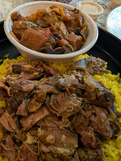 My go-to order is the braised lamb served over rice with their slow-cooked vegetables - the flavors are incredible and everything is so tender and perfectly seasoned. They're generous with the rice portions too, which I appreciate. I also always get the hummus topped with shawarma, and it never disappoints. All the salads and side dishes are exceptional and you can level up your meal with the home-made garlic sauce.