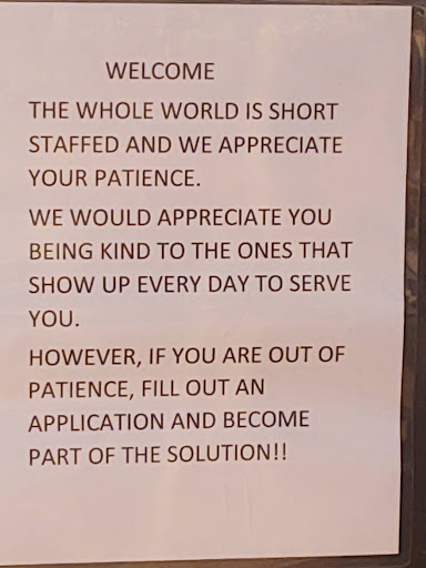 I'm a patient person (unless I'm really sick) I seen the message on their DT Speaker and I had to take a picture. I applaud them for their opinion and speaking up for not just their place but I think this goes for all businesses! I've been in some long drive thru lines and have heard some even yelling it's uncalled for. It's not their fault every place is short staffed. No it's not just because people are still in fear of COVID and don't want to work some possibly, but it's a combination a lot of the older people (baby boomers as one article I read called them) in the beginning when places shutdown many just retired. Seems the younger generation thinks they should be more an hour. Sorry but fast food is basically a first job type of thing summer job before high school graduation if not after and working while in college perhaps as most fast food is usually just part time. Although with things short staffed if could be possibly full-time and maybe some overtime. To those that have been impatient try being nicer no need to yell and perhaps even say thank you if it weren't for those working now and through the past year or so through the pandemic we probably wouldn't have anything to eat, clothes to wear etc. Kudos to...