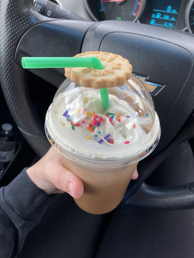 Cute little independent place that I wish I could rate more highly. Most of their business is as a drive-through I think. No tables. Two bars (one covered with flower pots and mostly unusable) with 3 uncomfortable stools at each. No outlets, no wifi (I used xfinitywifi), no music (the audio is overhearing the manager making personal phone calls ). Midwestern homey decor. Painted on the bar in front of me is "Thursday morning = girls" which is a sentiment I can get behind. Lots of coffee related knickknacks on sale. Tea is a raggedly set of boxes of bags in a drawer. Chai is Oregon Vile. Nice...