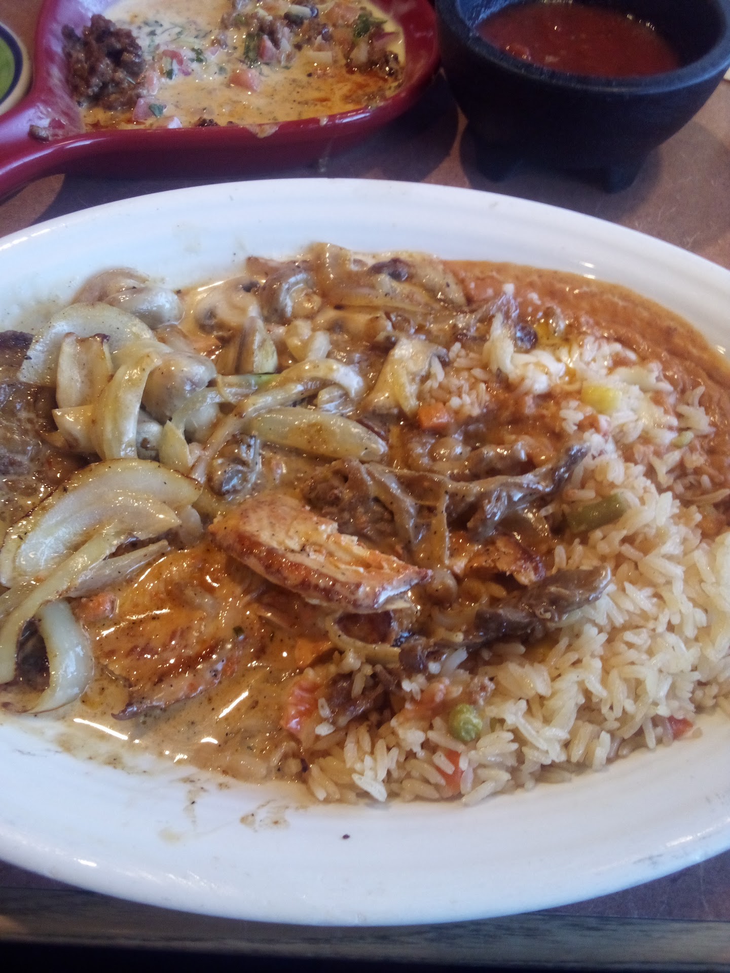 Read moreI have been meaning to try this place for awhile, so I decided to meet my brother and dad here for dinner as I was dropping them off at the airport the next morning. It was very underwhelming. When we first got there they dropped off the chips and salsa to the table. The salsa was a weird texture and spicier than any restaurant salsa I've ever had. Additionally, they also had some sort of weird mayonnaise dish you were supposed to dip your chips in as well that was not good, and made no sense paired with chips. I ordered the chimichangas with shredded beef, but when they brought it out it had ground beef, which I am not fan of. The plate also did not come with any vegetables, lettuce, sour cream, or pico de gallo, just rice and beans, which I thought was strange. When I ordered a chicken chimichanga plate to-go for my husband and asked for those things to be added, they charged me an extra $4.00 or so and a .50 cent to-go fee, which added up to about $14.00 for a mediocre meal you could get for $8.00-$9.00 at any other Mexican restaurant. Not only that, but the service was very slow all night. I think it took between 30-45 minutes to get our food, and about 15 to get our check once we asked for it, which is unusual for a Mexican restaurant. Overall, I was very disappointed and will not be...