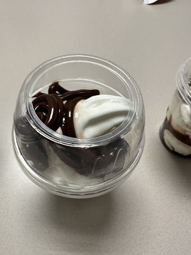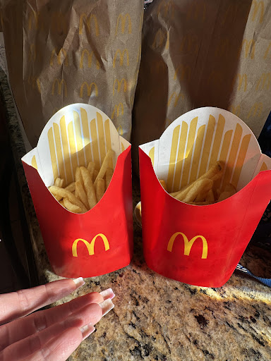 My wife and I drove to McDonald's to get a sweet treat in a small celebration of a milestone in the writing of her Master's study. We arrived to a fairly small line in the drive through but the employees made the line go fairly smoothly.