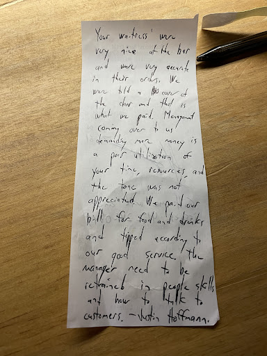 Our bartender and server were very nice and accurate with our orders, but we were originally quoted $35 for a cover charge per person for our 6 person group. We told them we were not interested at that price but we would pay $10 per person, which the door person accepted. After 40 minutes, the band was done and the manager came over and said we had to pay another cover because everyone else was paying a $50 cover. I told the manager that we paid our cover as discussed at the door and that we were not paying another cover and I was paying for drinks and food for 6 people. She demanded we pay more and I told her that we would close our tab of the food and beer that was just been served to us. She demanded that we leave and I responded that we would finish our beers and food that we had just ordered. Our waitress came to close out our tab and told us we had to leave before the next band started. I requested the manager call me because I was disappointed in how the manager approached us. This was my first time at this establishment and our friends who we were with said they have never had issues but this was their worst...