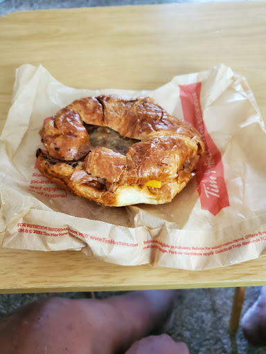 We passed by this town on our way back to Indiana. Someone at a gas station told us to come here after we asked about a Dunkinâ Donuts near by, this is our first time and last time trying Tim Hortons. We wanted to get a nice lunch with coffee instead we got hot coffee and food cold and not made how it really had to. We ordered Grilled Cheese Panini and ordered 6 orders of them. We had already been waiting more than 35 mins for our order, Which is okay if we wouldâve gotten nice food. Instead out of the 6 orders we got 1 box looking nice to eat bread was nice and crunchy and the rest looking like they put cheese in between 2 breads and sticking it in the microwave, they didnât even cut them half ways I pulled it apart in the middle in 2nd picture . Only the one box they did You can tell in the picture first was definitely left the time it had to be and the rest they just threw in and took out so quickly. $50 spent on lunch that over half was waste. Donuts nothing special about them at all. Iced mocha coffee was the only thing that I finished. To much wait just to get this. We wouldâve returned it back but had to continue our drive home. Wonât pass...
