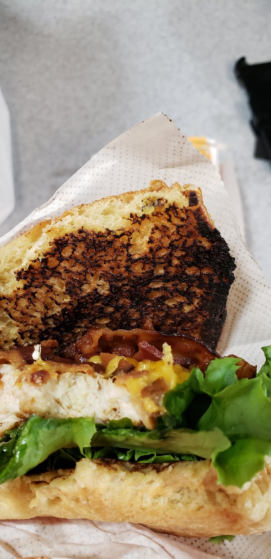 My visit on Friday was awful. I ordered on the app and stood in the pickup area while I waited for my food. There were two different staff members that asked every single person besides except me what they were waiting for and if they needed assistance. Every single person also received a pleasant greeting with their food besides me, even thought I said "thank you" when they handed it to me. I checked my ordered and one of the items were prepared incorrectly. I stood at the pick up area for a minute and tried to get the attention of the staff with no avail. This includes saying excuse me to a staff member that stood right next to me. Another guest that was ordering at the register had to tell the staff member that I needed assistance before I could get help. Once I finally got my sandwich, the bread was burnt.