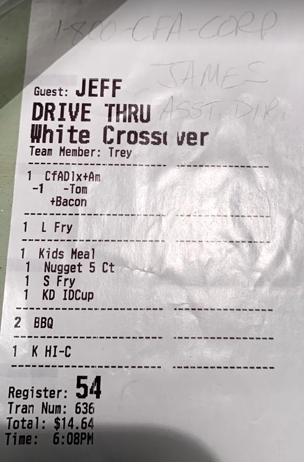 Oh, and the food tasted fine. I mean, it's Chik-fil-a. But the experience...