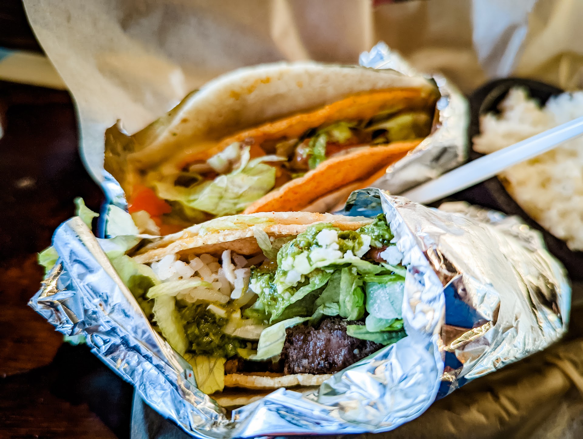 We all ordered tacos for the main event. The first time I went I had the nachos and those were delicious! Highly recommend! The tacos are very delicious as well! They are larger in size and not skimpy with the contents. I ordered two tacos. One of them being Blue Dream and the other, The Heater. Both of them were delicious! My husband and my best friend also very much enjoyed their tacos.