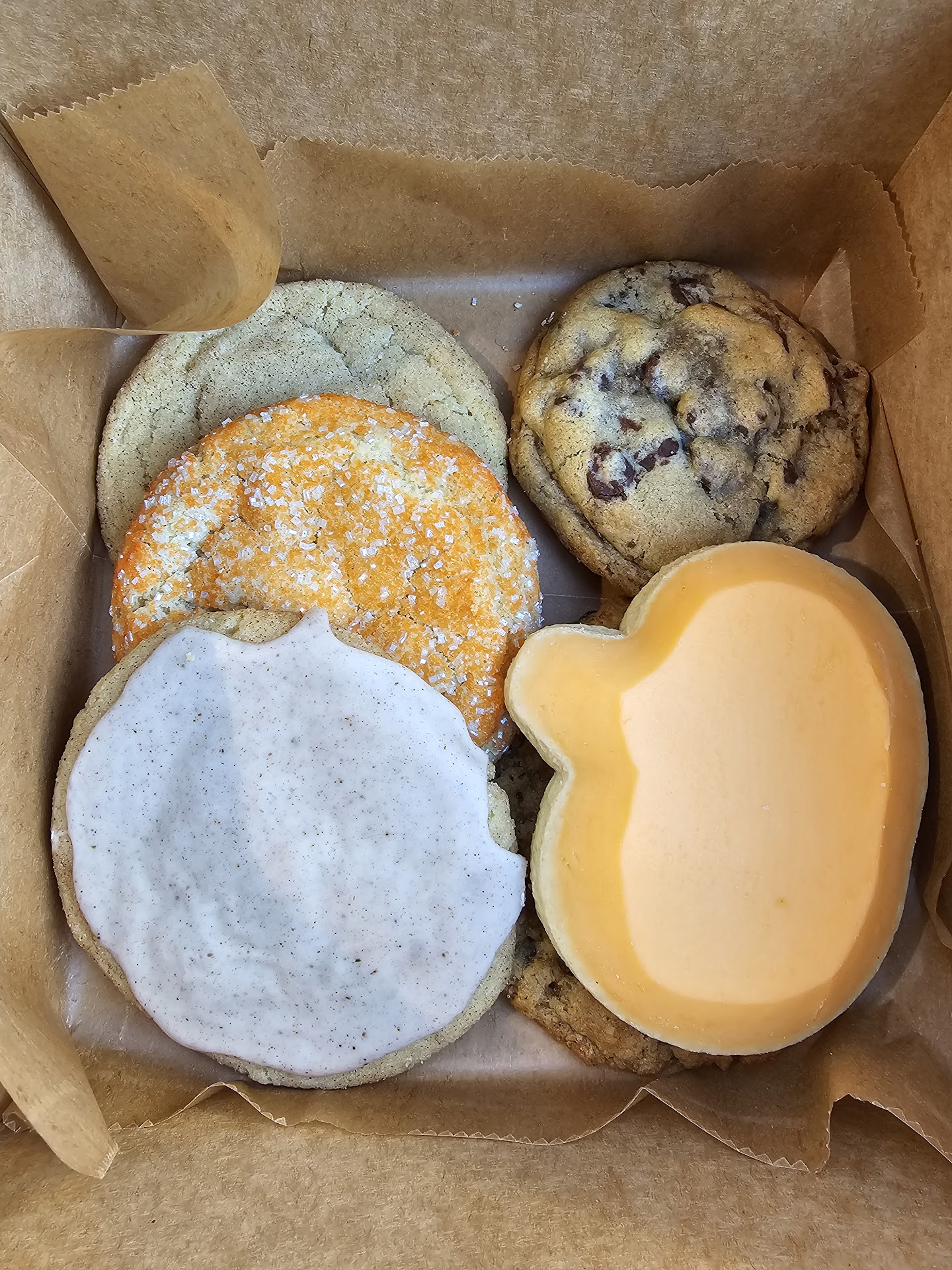 Read moreThis is a very quaint little shop. It's an old house that they turned into a bakery/café. So, parking is a bit tight in the back. Plus, you would probably drive right by it if you didn't know to look for it. The service was fast and very friendly. We purchased a hot apple cider($4) and 6 cookies(oatmeal raisin, chocolate chip, snickerdoodle, frosted sugar, rainbow sugar, and frosted pumpkin) for $25 with tax. The cookies are delicious and a good size, but at $3 each, I'm not sure I would pay that again. That said, I would go back to try a sandwich or something...
