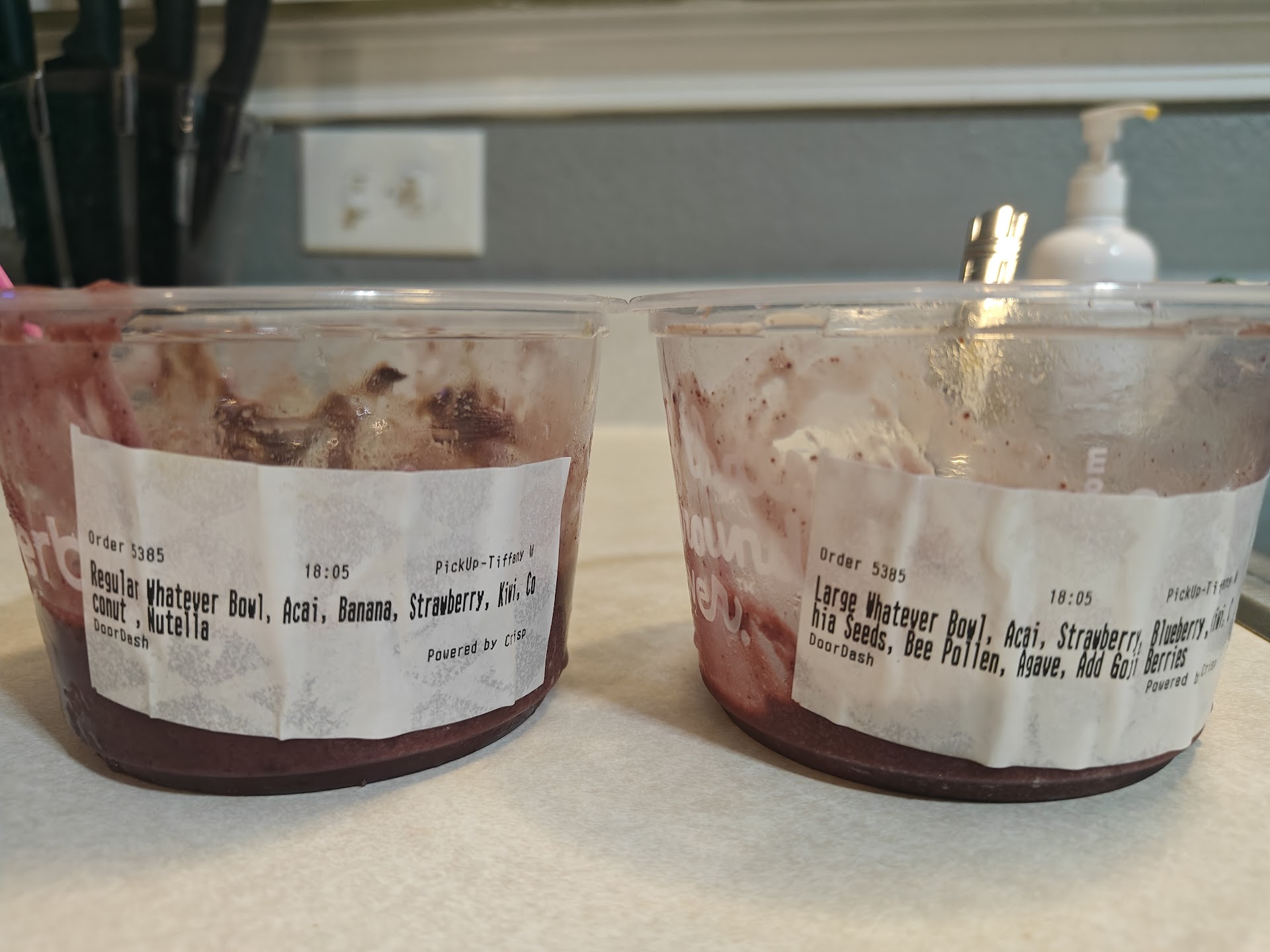 Read moreOrdered a large bowl and small bowl for my daughter and I. Went to pick up and the employees were sitting at the table as it was completely dead. They pull my order out of the refrigerator and hand me a sealed bag. I get home and I notice that the extra $3 I spent for a large bowl was the EXACT same size as the regular. They weren't busy so that isn't the excuse. Either this is how the company operates or the staff was wasn't paying attention when making the orders...this is highly disappointing. Will have to continue to drive to Vitality Bowls to get...