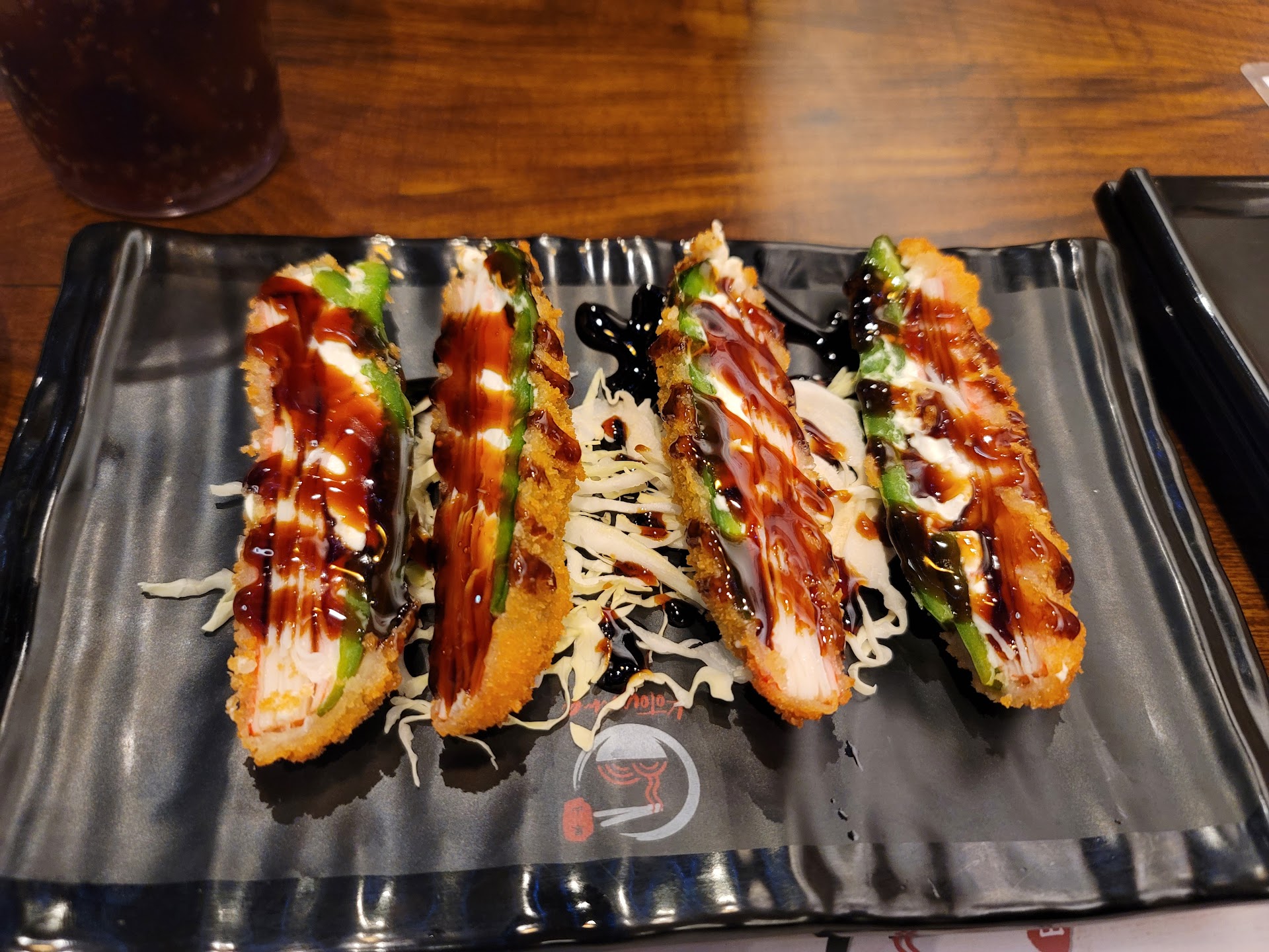 I had wanted to try the tiramisu bubble tea advertised on their grub hub menu but the cashier told my husband they didn’t have that so he got me a Matcha one instead. The Matcha bubble tea was totally serviceable and as I would expect save the rectangular agar-like tapioca jellies they use instead of traditional pearls, which were different.