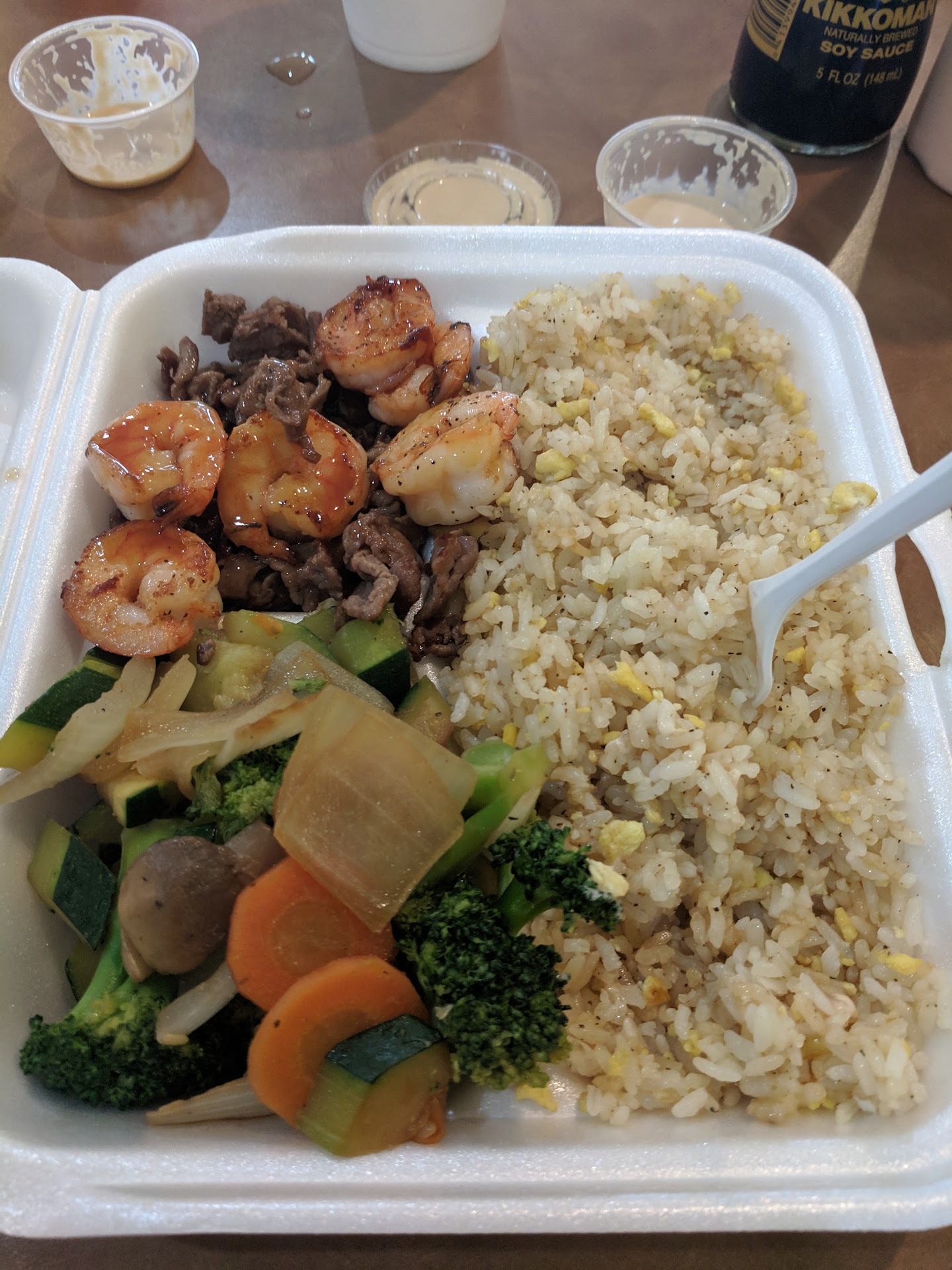 Read moreI’m disappointed to see poor reviews for this place because we have always had a great experience here! This is a fast food sushi/ hibachi restaurant....some of you who left poor ratings need to lower your expectations a bit. You certainly wouldn’t expect McDonalds to serve anything like Bru Burger so I don’t know why people are assuming this place would serve anything on par with an actual hibachi restaurant like Sapporo. Pretty sure most fast food places that you can eat-in at don’t serve plates and silverware either, so take your tears about eating out of a to-go box elsewhere. Talk about entitlement. Let’s be realistic here, folks!