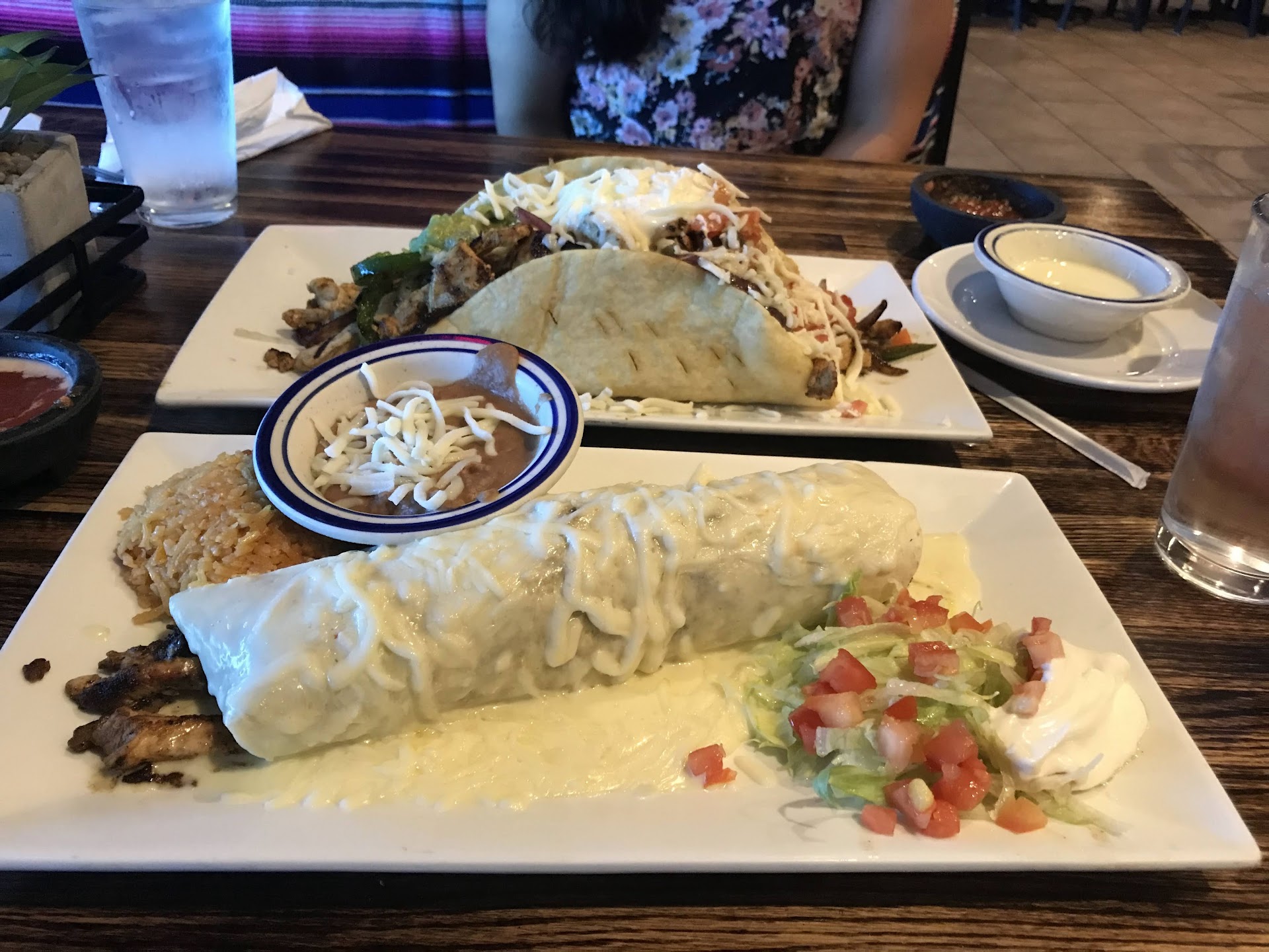 Disappointed and frustrated, food was ok, nothing really that made it better then any other Mexican restaurant, I ordered the steak fajitas, but I had to ask for more tomato since the 1/4 Worth of diced tom was just enough to make one fajita and I had to ask again for more since the first request was just enough for 2 fajitas then the third time I asked i never received, also had to ask for more sour cream because it also lacked sufficient amount, they give you half a steer of meat but a handfull of filler at the end i ordered fried ice cream and a drink to go, the drink came in another glass so I ended up pouring it into my sons empty to go cup and the fried ice cream had good flavor once you got past the soggy un chewable corn flakes or similar to corn flakes, now all this would have been ok to deal with of only there was any room to actually eat, with the plates and bowls and lack of table room theres no room to rest your hand or elbow or even put the fajita down you just made on a plate without having to put it on top of the ingredients...theres just no room to actually eat comfortably....I dont know, the place just drove me mad between forever holding my food and waiting to ask for enough guts for the food. Maybe if you cut the meat portion in half and add more lettuce and tomato and such then I bet there would be a lot more room on the table to actually...