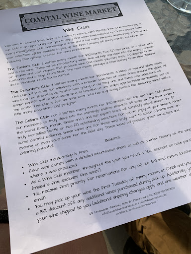 Read moreCoastal Wine Market... how I love thee. Let me count the ways. (heart swoon) Seriously, the only thing that could make this better in my book would be to add live music or jazz music. Heaven! The food here is amazing. You simply MUST try the Coastal Comfort Cheesesteak! There are just no words to appropriately describe the deliciousness of this sandwich, but I’m gonna try. The sliced ribeye is delicious and pairs beautifully with the bourbon zinfandel ju. The three cheese sauce is a completely decadent cheesy experience that puts this sandwich over the top. And the bread from The French Pantry is the perfect vehicle for this monster of a sandwich. We also had the pork quesadilla. While it was delicious in its own right, the cheesesteak stole the show! The staff is always warm, welcoming and friendly. They make you feel like you’re visiting an old friend who just happens to have amazing food and fantastic wine. The wine! How could I forget the wine? The wine selection is very nice, and the staff is very knowledgeable and eager to explain each one. They even offered to guide us in the right direction on our next trip to Napa. Needless to say, Coastal Wine Market is now one of our...