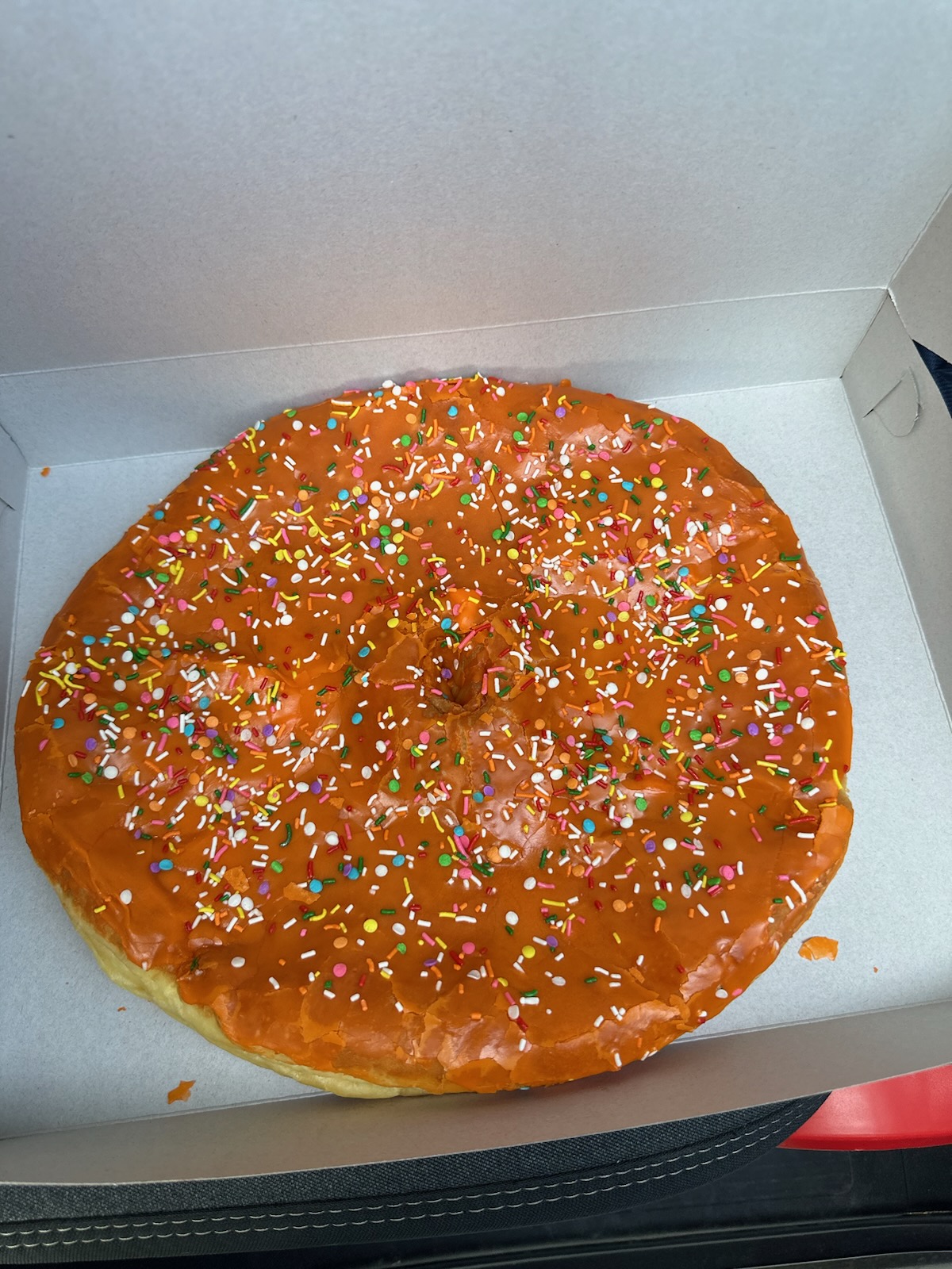 Special ordered a large donut (instead of a cake) for my son's 3rd birthday, per his request. He asked for a large donut with yellow icing and sprinkles. This is what we got. I was so disappointed, and being that we picked up the donut on the morning of his party, there was no time to get a replacement donut elsewhere.