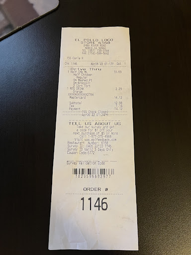 Read moreThis location is run by monkeys. Their lobby is closed so you can’t order inside yet I’ve sat in their drive thru for 45 minutes with only 4 cars in front of me. They always get my order wrong and the chicken is always burnt. I tried to go tonight because I unfortunately really like el pollo, checked their listed closing time and saw they closed at 10pm, cool, it’s only 9pm. Nope. Drivethru was blocked by cones, waste of my time. Don’t know why I expected anything different. Whoever manages this location should be fired as soon as possible as well as everyone working there. These people probably have the attitude that they’re not paid enough to care, bud the reason you’re working at this el pollo loco making minimum wage is because you have horrible work ethic and you’d probably get fired anywhere that would...