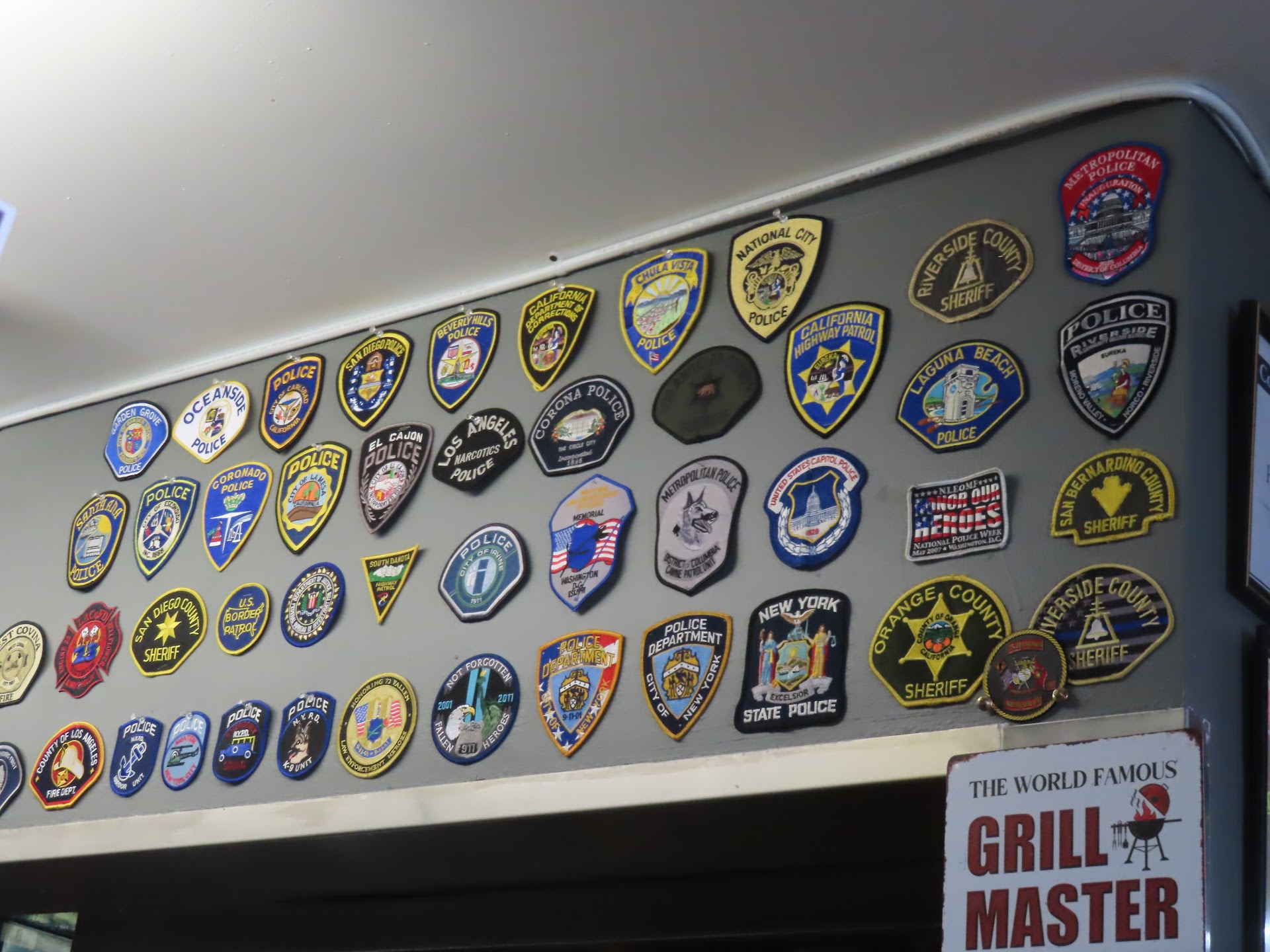 They did a really good job of decorating the place. Behind the counter there are a bunch of patches from different police departments, the dining area has hanging lights, and it wasn't until after the fact that my sister pointed out you're supposed to squeeze the rubber chicken to get the employees to come to the counter if you need something.