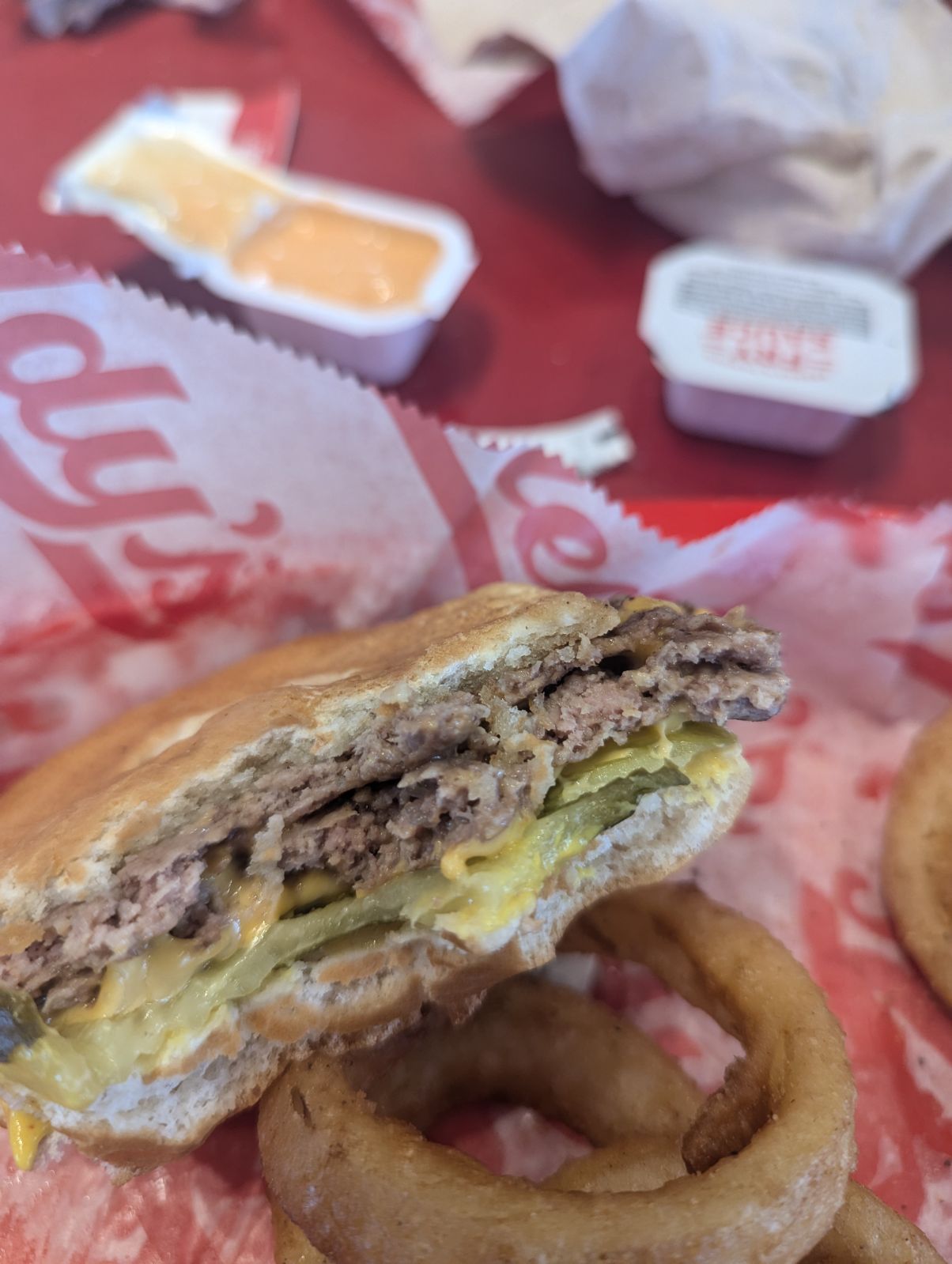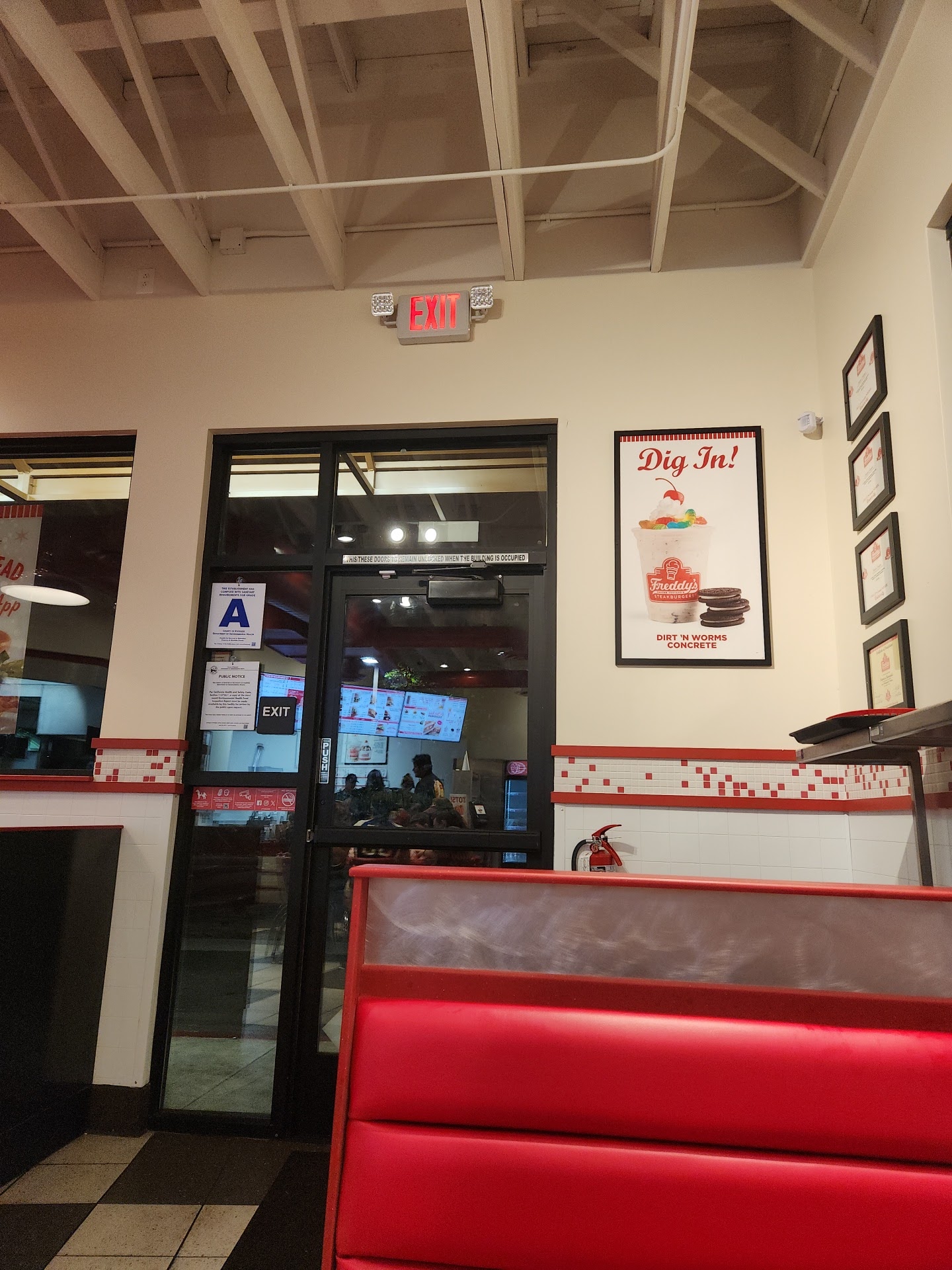Read moreWe love Freddy's and have had them before. First time trying this place in Norco. It is really small compared to the others. I ordered light seasoning on my fries with my combo. They put my fries on my husband's combo, and we realized it after he already ate most of them. So he ordered me another order of fries. He asked for extra grilled onions. Did not get it. His Patty Melt had very little grilled onions. One half of his patty melt had some grilled onions. The other half had literally 5 pieces of grilled onions. The place is a mess. So dirty. Tables not cleaned, the drink station was disgusting. It looked like it was not cleaned for days. Food on the floors, just bad. The employees were nice but that's about it. By the looks of the dining area, there was no way we were using the bathrooms. I can't imagine what those looked and smelled like. This store desperately needs help in cleanliness and prepping food. We will go to a different location next time with a lot more parking...