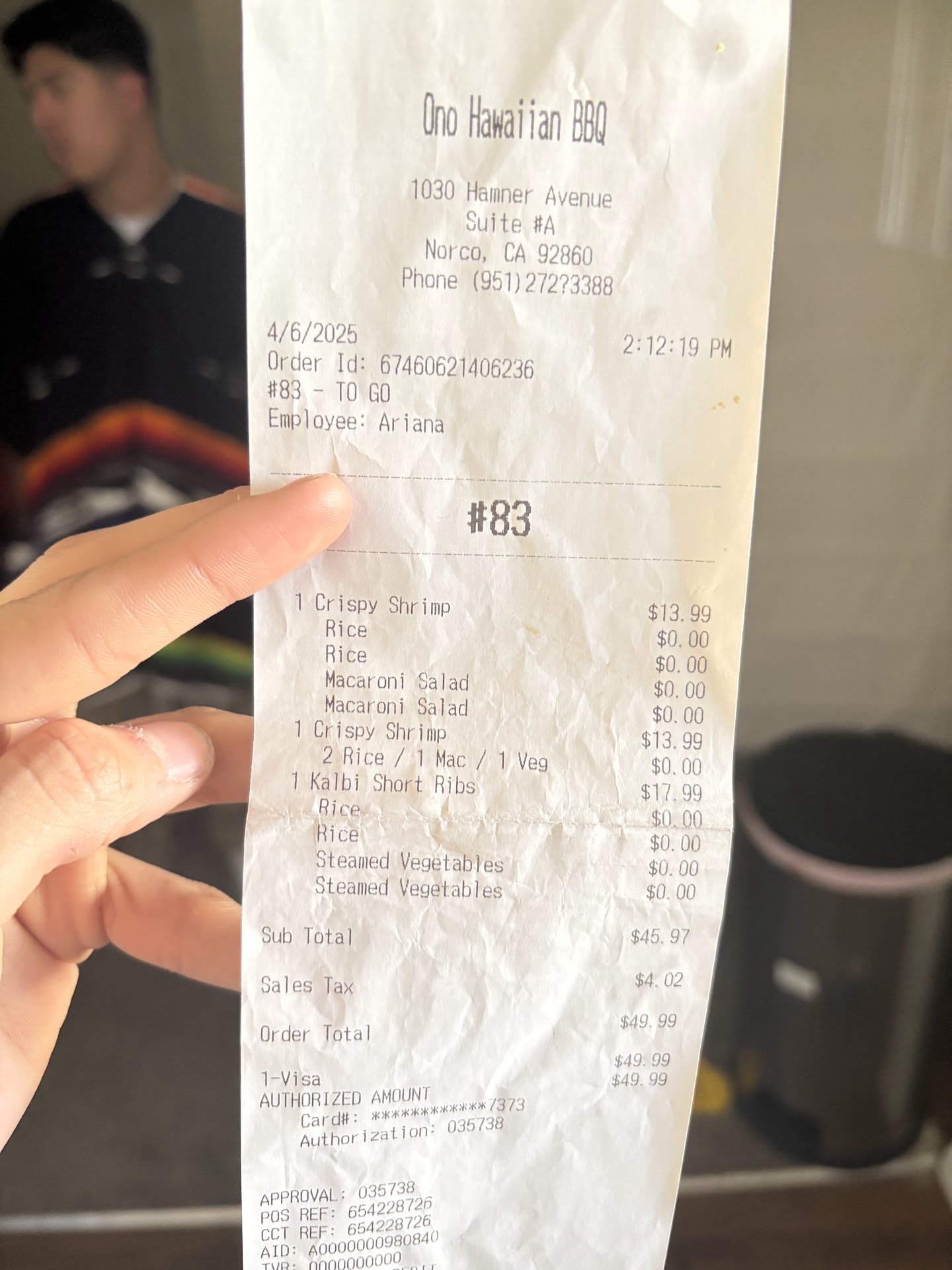 Read moreOnly reason I come to this location is because it's close by. I feel that the Ono chain doesn't give you as much food as the Aloha chain, with only 2 pieces of chicken in the mini meal compared to 4 at the Aloha chain. Don't really notice a meat quality difference between the two either. However, despite that, the place is always relatively clean and I've never had "bad" service here, but it's definitely not stellar or anything to write about. Only thing holding it back from a 4 star is just the portion size, everything...