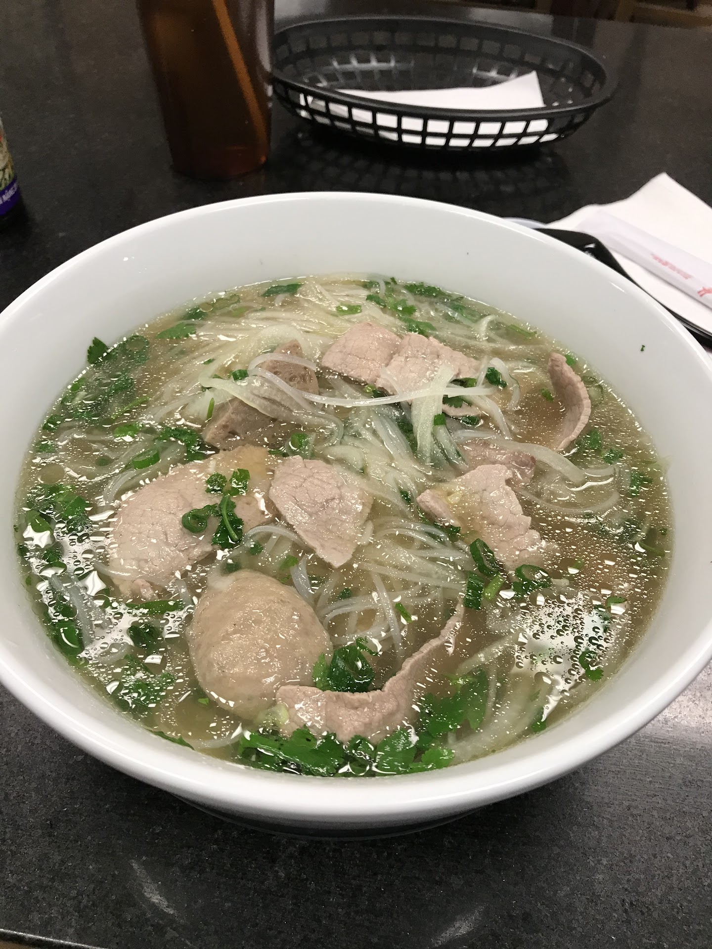 This place is clean, by that I mean the tables, bottles of condiments are clean, not sticky, floor tiles are clean, Health Department rated A. Been coming here often in the past two weeks, I can have Pho every day. The rice noodles have the right consistency, the broth is superb. The meat choice is Filet Mignon, not the rare steak which is too chewy for me. The beef meatballs are also a good choice. I highly recommend this place.