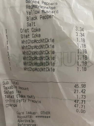 Read moreGet it together guys!! When you have Uber/Post Mates orders going out, you need to double check and insure the order is completed and correct before it leaves your store because we do not have the luxury of checking and correcting it as a post mates customer! We are home with Covid, so can not come in to get the rest of our order, which defeats the point of placing an Uber order to begin with anyways, we called and this was their solution, for me to drive down there! We ordered 6 cookies, and got one and the wrong kind too ! Ordered 2 sodas and got one! Look at the receipt, how do you miss the 5 other cookies when putting this order together ??? Someone is lacking attention to detail! Also requested a sandwich toasted and it wasn’t . Im extremely angry to have paid $64 for 3 Sandwiches, 1 soda...