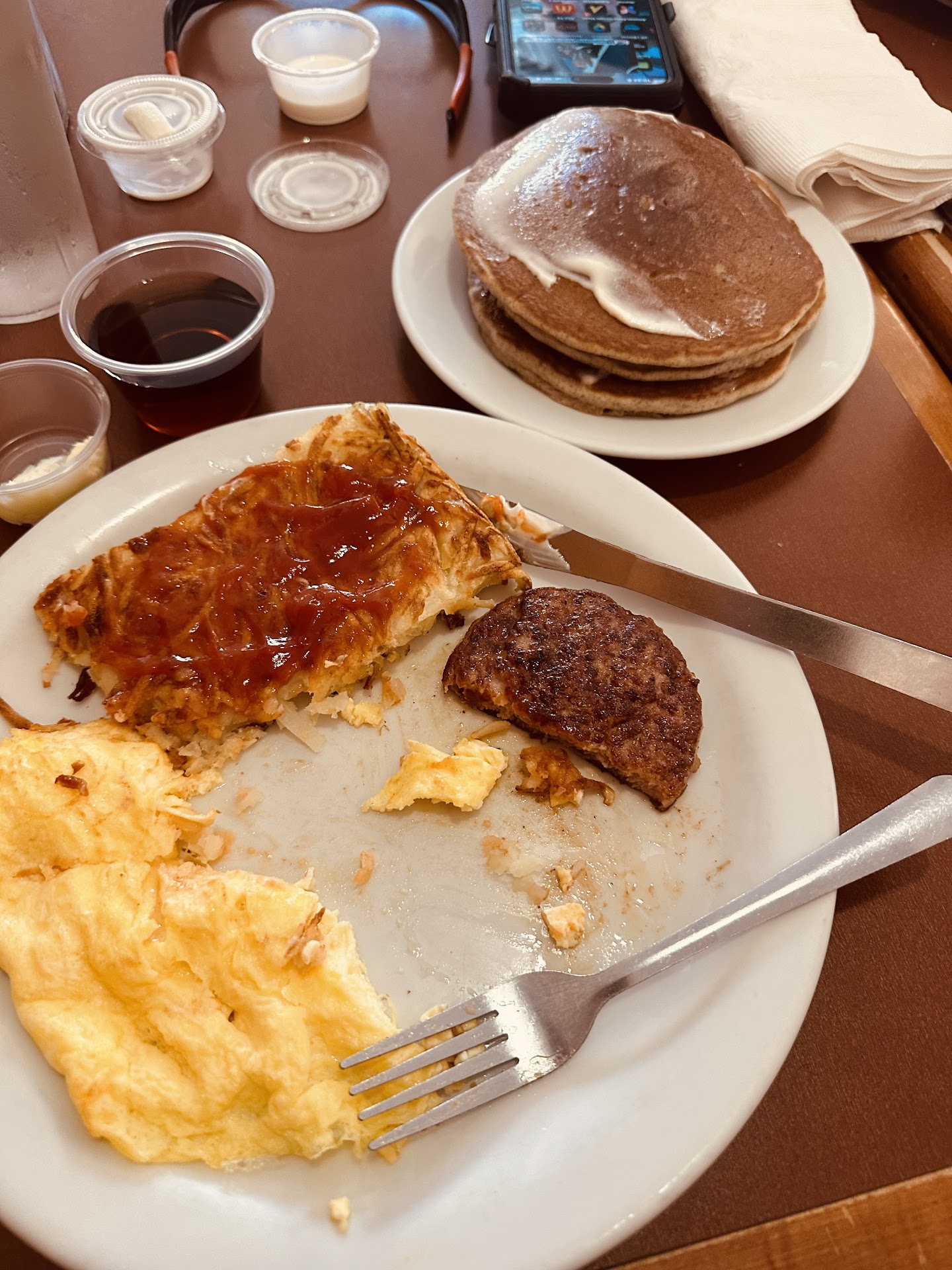 Read moreI was really excited to go to this restaurant because I’ve been to one in UT and I LOVED it, however this location fell VERY SHORT and it was quite the disappointment. The only one that gave me hope was the hostess, she was very sweet and friendly. We were seated around noon on 9/26/25 aside from the hostess we didn’t get approached or greeted until 10mins later, our waitress passed by saying she just needed to drop off a bill and she’ll be right with us, another 10-ish mins go by and she finally comes back. I REALLY wanted to eat Eggs Benedict but since I’m currently pregnant I just wanted to know if they made their Hollandaise sauce with raw yolk or not which I regretted asking cause that took an additional 10 or so mins for her to ask someone in the kitchen. She came back without an answer so I decided not to ask any more questions and just get something else. I got the Norco something with a side of strawberry pancakes and when the pancakes finally arrived they were plain so they had to take them back to add the toppings. I couldn’t get a piece of a pancake without it crumbling on the plate it eventually just looked like mush, did not enjoy my experience since I also added a side of toast which never arrived. For a plate of scrambled eggs with bacon, sausage, mushroom, and ham, the side of pancakes, 1 OJ, 1 Sprite, and a burger it was $60 IMO that’s too much for food and service that’s not worth it. All the waiters and waitresses that came to our table seemed like customers were such an inconvenience. I was very uncomfortable, so based on my experience I unfortunately cannot recommend...