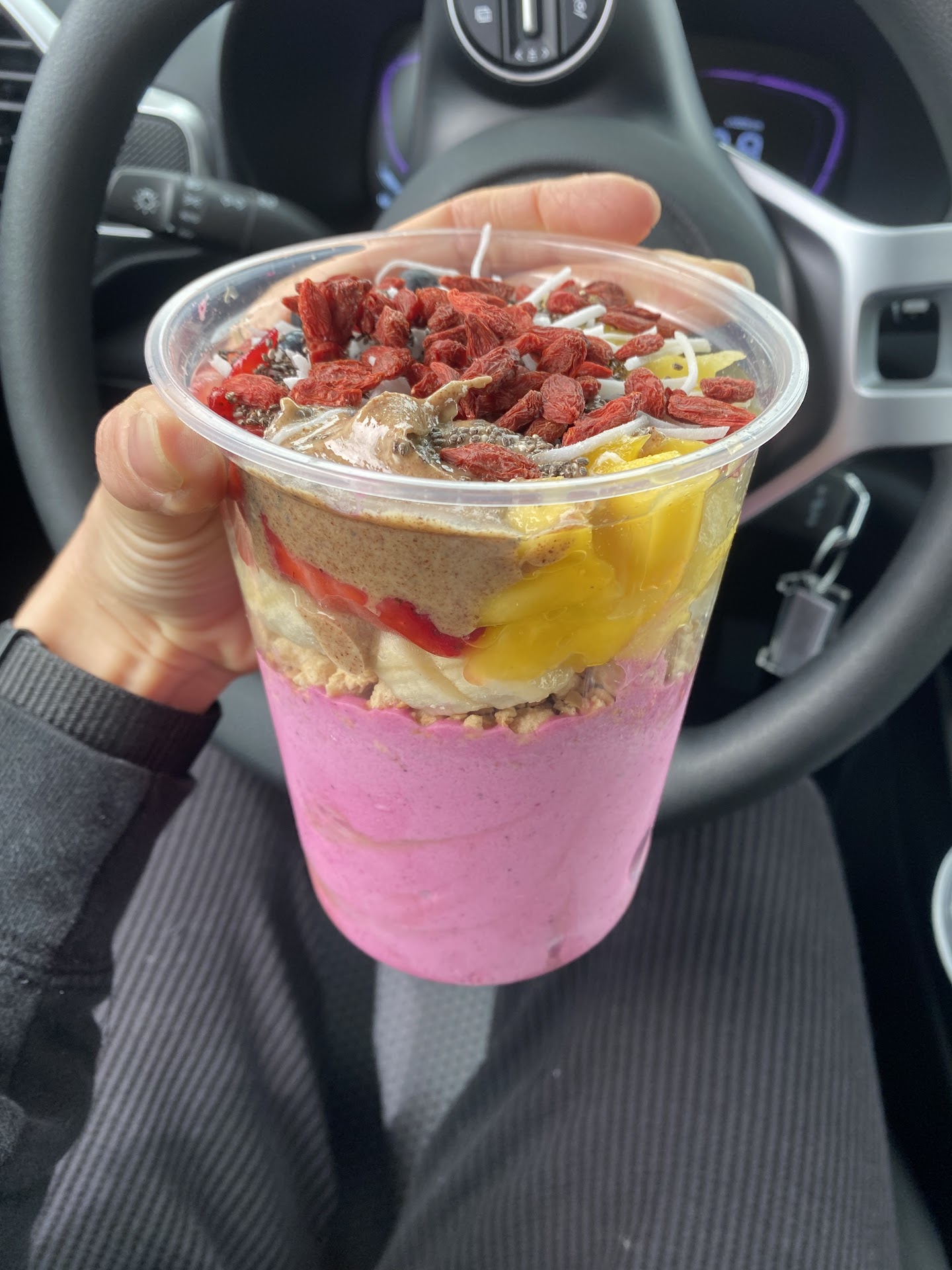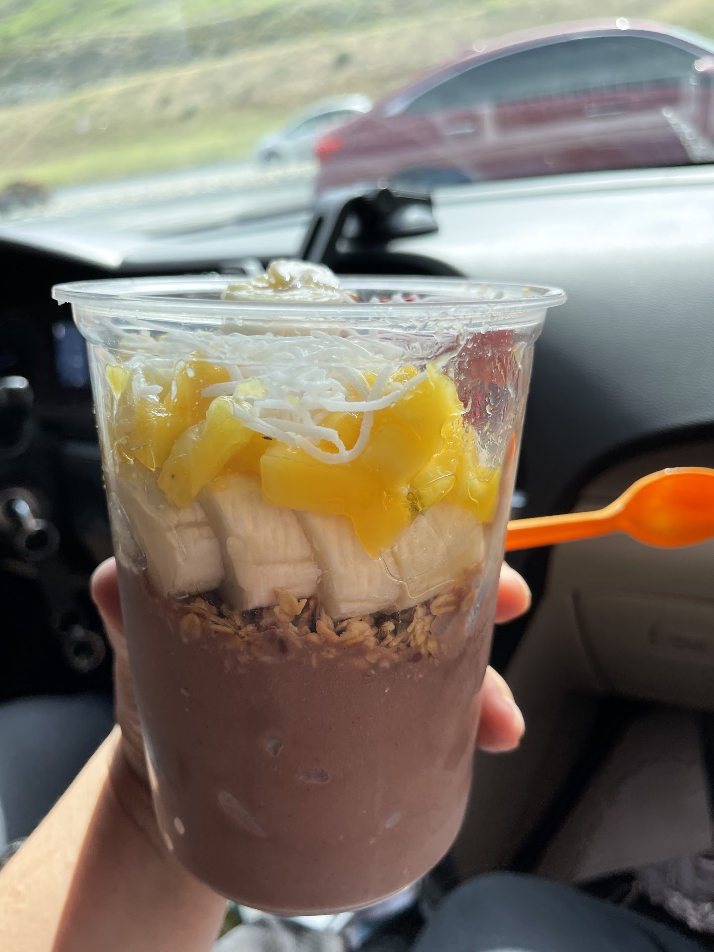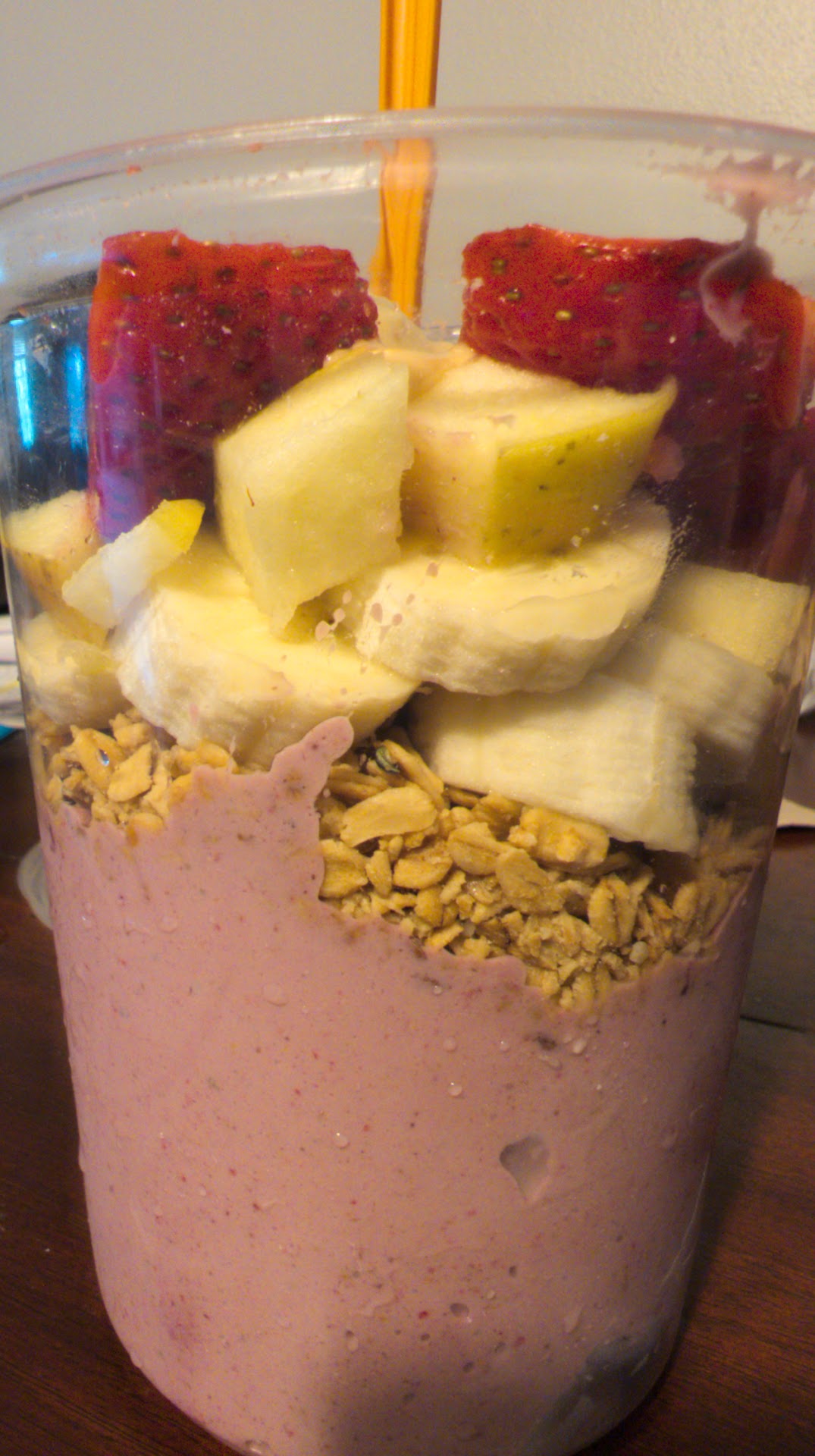 This bowl was on the bland side. The peanut butter was dumped on top in the middle of the fruit. I'd prefer the peanut butter to have been blended inside as it lacked any flavor.