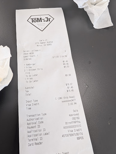 Fries were crispy, burgers hit like they knew I needed comfort, and the vibe? Classic Tom’s—chaotic in the best way. 10/10 would let her mess up my...