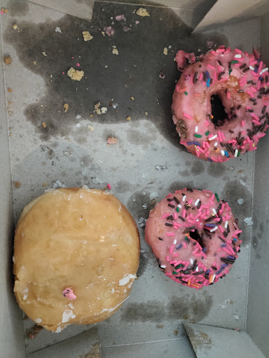 These donuts are kinda expensive but when the product is good who cares.......Well that was not the case on my last visit, when you re-cook donuts there is nothing to say or complain about. So, after 3 years I am done with this place. Re-cooking donuts is not only gross it's unethical in my opinion. I refuse to play Russian roulette with my food.....Yum yum donuts is no longer my go to spot.....I should have known when they stopped providing boxes for...