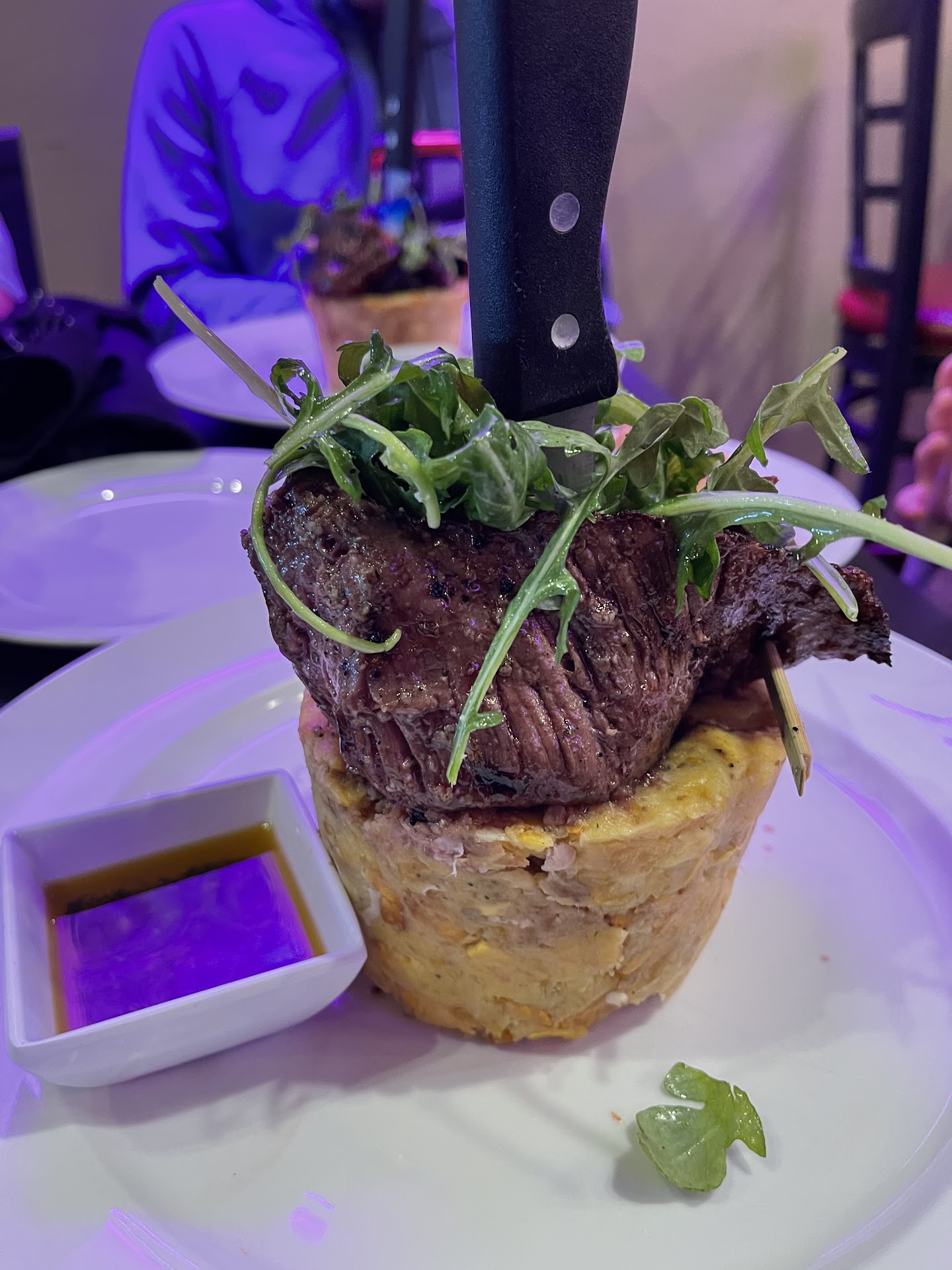 Had a traditional mofongo with churrasco, it was good but it was a bit on the dry side. I wish it came with a little chicken stock on the side or something to moisten it so it’s not so hard to eat. The churrasco was cooked to the desired term and flavorful but it was a bit cold for my preference. We ordered a sushi roll which never came so half way through our meal we let her know to forget about it (it was still on our bill when we got it so check your bill) The natural juices were good we had the tamarind and passion fruit. They don’t offer water at this restaurant, I eat out often and this was a first for me, you have to buy a bottle if you want water. Ordered sprite for my kids and got club soda, let the waitress know and she said the sprite was going to take a while because they needed to install it suggested I order something else at this point we had been sitting for a while and my kids were thirsty so I just asked her for the fancy water bottle. She only brought out two cups for the water had to ask for a third cup twice because she seemed to have forgotten about us. There was little to no attention in terms of service which didn’t feel justified considering this is a small space with minimal seating and there were 4 waitresses tending, probably 2 tables per waitress at most. It took forever to cash out, I had to ask someone else if they would please help because my waitress seemed to have forgotten. She couldn’t help and notified the waitress who later came to take my card, then she went to chat with the large party that got sat instead of taking care of my bill, she just stood there with my card in her hand.