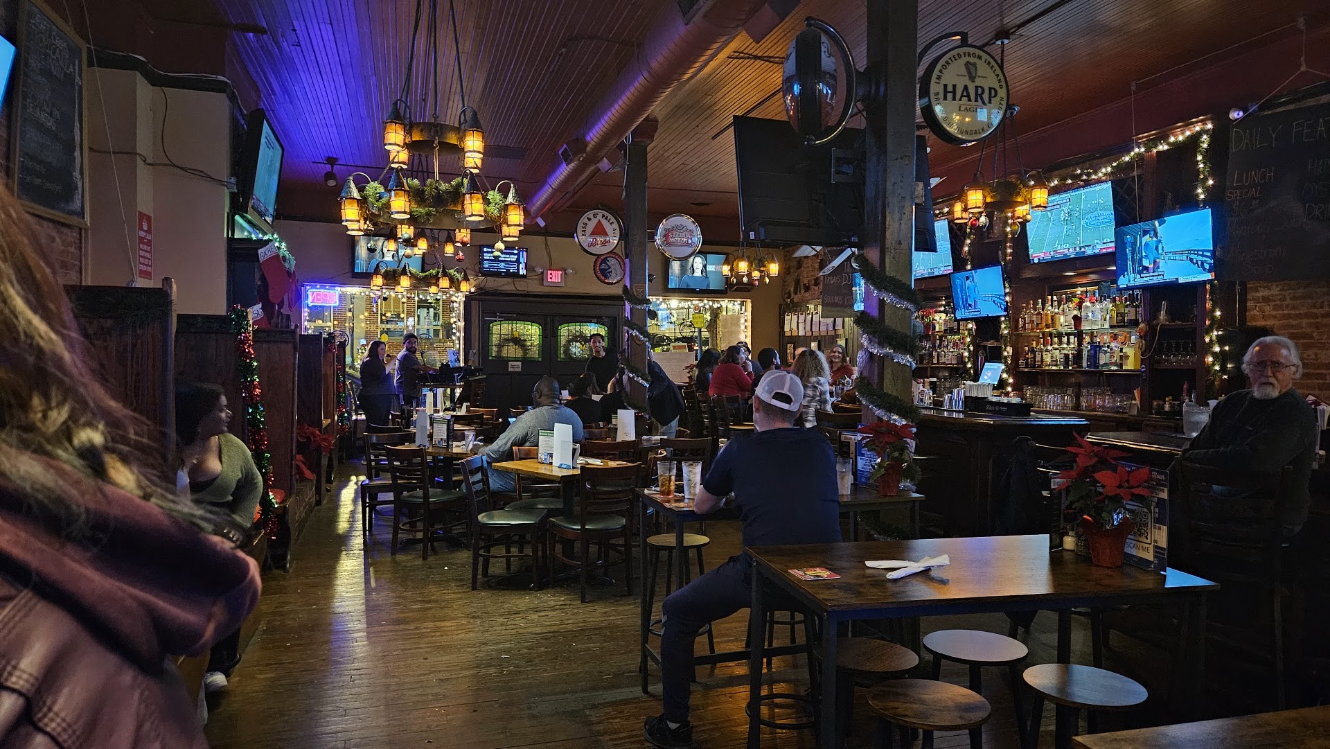 Read moreWhat a dump! The unkept landscaping & cheap plastic plant on the patio should have been the first hint. While I was there the drains behind the bar clogged & foul smelling water flooded behind the bar. That was just the beginning, look up! They keep it dark in there so you can't see all the ripped upholstery, the fact that all the stain & varnish are wore off the booths & tables, then on top of that all the dust & cobwebs hanging above you from their "decorations" come sprinkling down on you every time a door opens a breeze comes into the dining room. AND I have to mention the smell in the men's bathroom! So I'm supposed to eat at a place where the bar floods & the bathroom smells like they have a bad sewage leak. Also, as a bartender myself, don't order any drink that uses sour mix. It comes out of a gun & tastes horrible. Lastly, an "English Pub" with no English food. And for the uneducated Guinness & Harp are Irish beers, they could at least sell Bass...