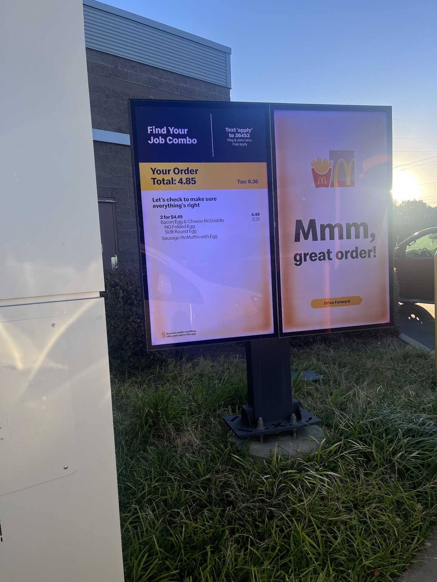 Read moreLet me start by saying i frequent this mcdonalds atleast 4 times a week. Every time I go thru this McDonalds it takes forever. It doesn't matter if I'm in drive or going inside. Every time I order they can never hear me so therefore I end up repeating my order twice if not 3 times. I meant to do this review a few months back and forgot. They used to ask every time if u wanted to try the chicken strips. It never failed the day crew Always asked. I HAD NEVER TRIED THEM BEFORE. There was a lady (for 3 nights in a row) I came by at nighttime all 3 days. She didn't ask me the first night or the second night if I wanted the chickenstrips. The third night came and it was the same rude lady. She did not ask if I wanted the chickens strip again. When I made it to the window I paid for my food and asked her if I got the strips BC she didn't ask me. THE ONLY REASON I SAID SOMETHING THAT NIGHT WAS BC I ONLY HAD $3 TO MY NAME UNTIL FRIDAY. I got a mcpic two for my son and his grandma. That night I didn't have money for food for me. AFTER I ASKED FOR THE STRIPS FOR FREE (not being rude or nasty) SHE TOLD ME NO, THAT AINT HOW SHE DOES THAT AND I WAS JUST TRYING TO GET FREE FOOD AND SHE DONT JUST GIVE OUT FOOD FOR FREE. ON THE MCDONALDS DRIVE THRU SIGN IT SAID( if we do not offer u our chicken strips then they r free). I said this to her and again she said that's not how she does that. BC I have to ration my money out, getting paid every two weeks sucks. Its cheaper and easier to stop and get food sometimes. It was about 10:45 at night and they weren't closed yet. Needless to say I went to bed hungry that night, I had no food in my fridge, the was no can foods at my home. I DO NOT ask for things for free. I only said something bc I needed it. IDK IF THIS LADY STILL WORKS THERE OR NOT. She is bad for business. Not nice no smiling and just rude as...