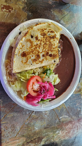 Quesadilla de carne asada 4/5 - pretty good sized plate. The carne asada was Well seasoned And there was plenty of cheese that was flavorful as well. The beans did not look appetizing but had the right amount of salt. The rice had slight flavor but was fine when mixed with the beans. The salad was bland though.